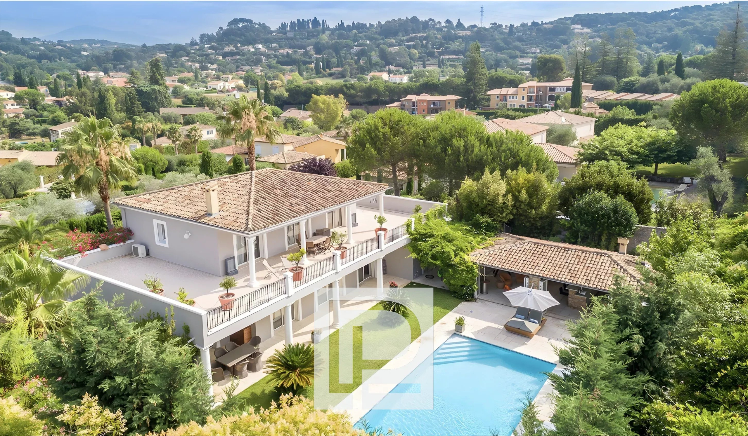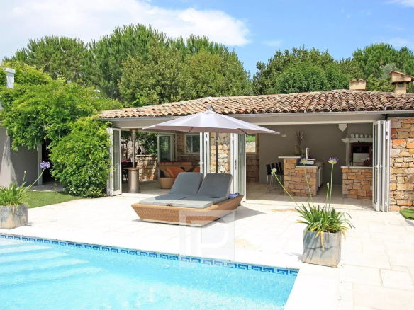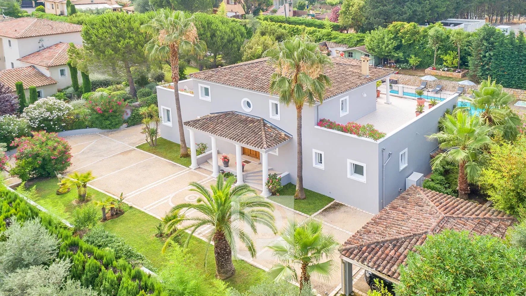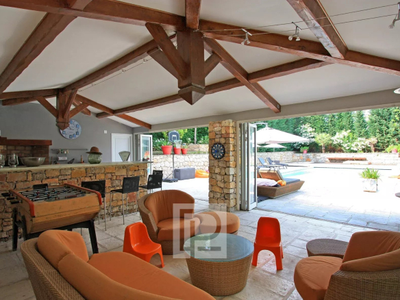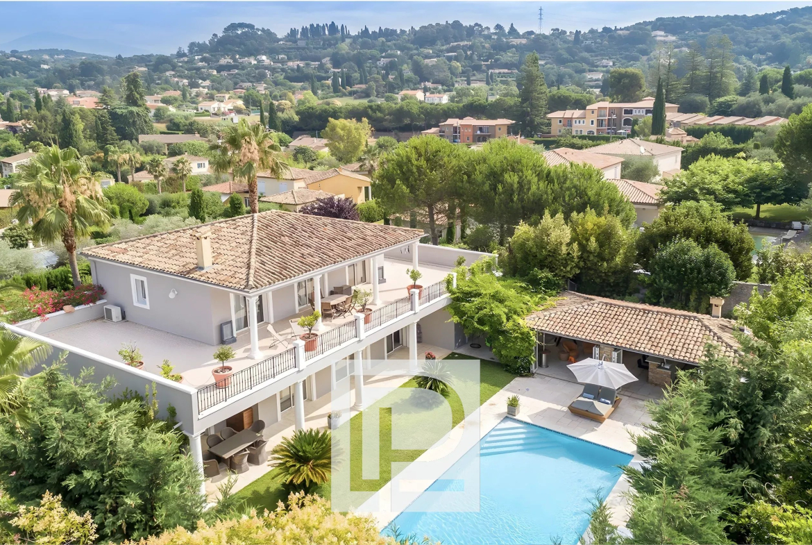 Dans un domaine résidentiel de Mougins, grande villa familiale de 300 m² avec annexes, Hall d’entrée cathédrale, une vaste réception avec cheminée, une grande cuisine équipée + cellier, 4 chambres avec bains et dressing, un bureau, une cave, une buanderie, un pool-house équipé de 45 m². Le tout sur un terrain plat de 1650 m² avec piscine chauffée (11,5×5,5) avec volet électrique, abris voitures + parkings. Une maison complète de qualité. Rare sur le marché !
