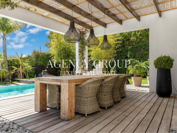 Dans un domaine calme de Mougins, magnifique propriété de 350m2 implantée sur un terrain de 1500m2 aux essences méditerranéennes.