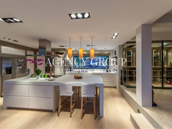 Cette villa est composée comme suit : un double séjour, avec cuisine américaine et cave à vin qui raviront les amateurs. 3 chambres double en suite, avec salles de douche et toilettes. Enfin une chambre de maître avec salle de bains et dressing.
