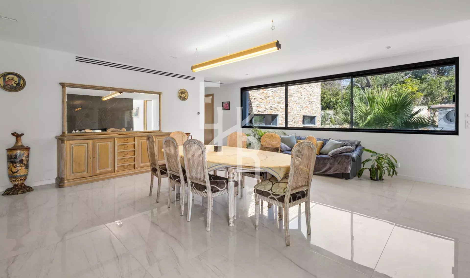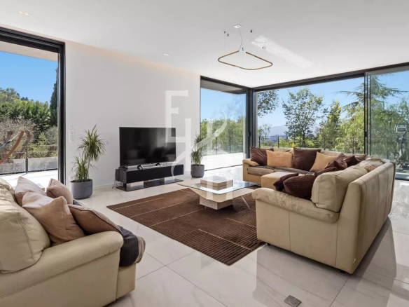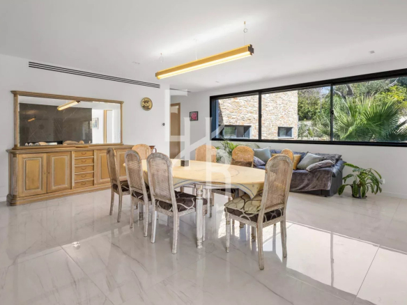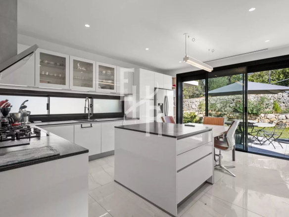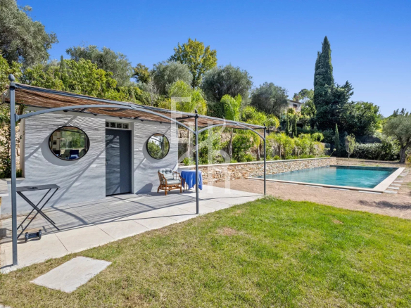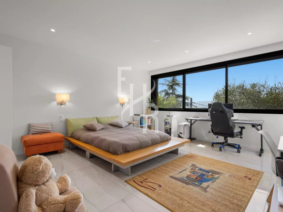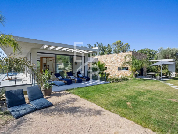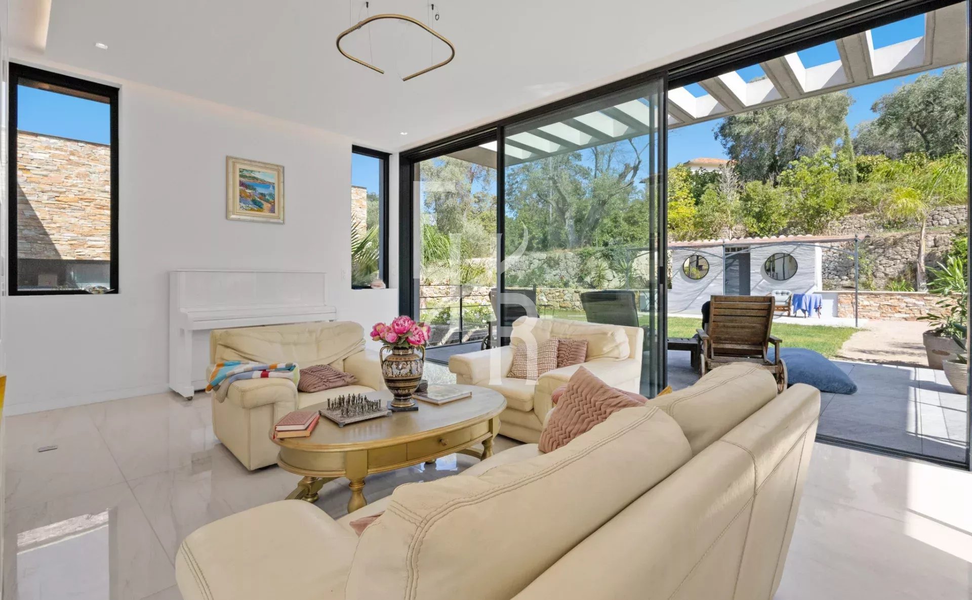 Cette lumineuse villa de qualité aux prestations haut de gamme est au cœur d’un agréable jardin avec des oliviers centenaires de 4 900 m² avec piscine. elle est distribuée en de très vastes volumes pour la triple réception avec cheminée, la grande cuisine équipée, les 4 spacieuses chambres en-suite, ainsi que d’un appartement indépendant. Home cinéma, fitness, des pièces évolutives. Triple garage.