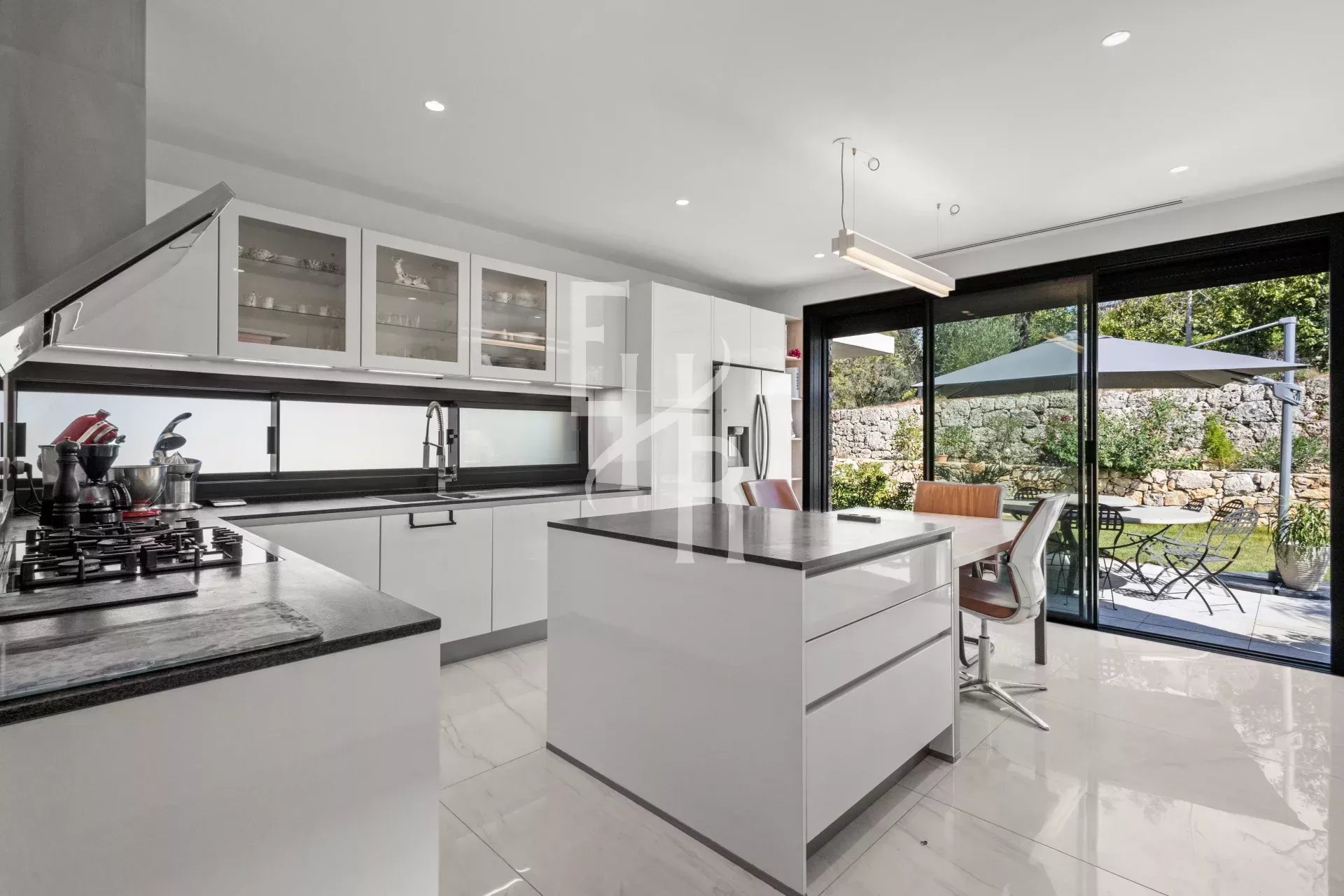 Achat/ Vente Mougins. magnifique villa contemporaine neuve de 493 m² avec annexes située dans un secteur très résidentiel très bien exposée et bénéficiant d’une très belle vue sur le vieux village et les collines.