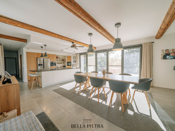 La demeure principale, d’une superficie de 234 m2, est complètement modulable : elle s’adapte pour recevoir famille, amis ou pour louer de manière indépendante une partie de la maison, tout en conservant intimité et confort.