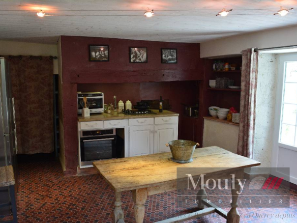 De nombreux éléments anciens ont été préservés : plafonds à la française, beaux parquets et sols en terres cuite Double vitrage + chauffage à bois granulé Site au calme sans voisins immédiat.