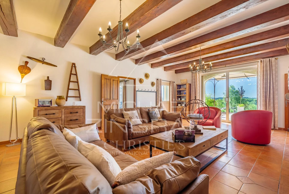 À l’extérieur, la nature est omniprésente. Le terrain, planté d’essences régionales, de truffiers, d’abricotiers et de cerisiers, s’ouvre sur de larges espaces en restanques et de beaux points de vue. Une piscine de 9 x 5,5 mètres permet de profiter des journées ensoleillées, tandis qu’un terrain de pétanque ombragé invite à la détente. Un petit étang, les sentiers de randonnée alentour, ainsi que le calme ambiant renforcent le sentiment de sérénité que dégage cette propriété.