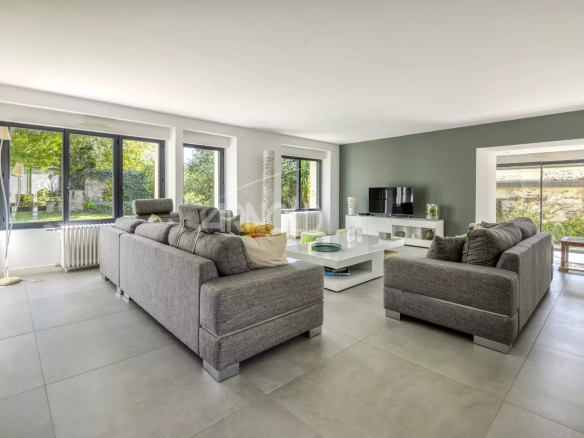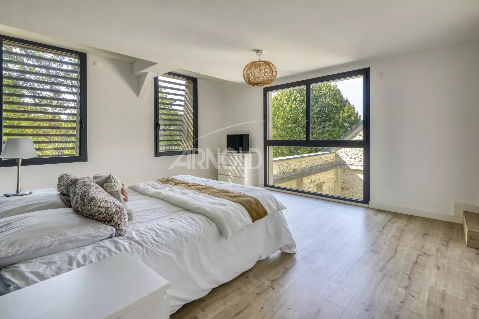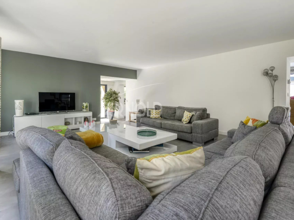 Elle développe ses 267m² sur 2 niveaux, comprenant un rez- de-chaussée lumineux doté d’une chambre et salle d’eau de plain-pied, un salon confortable, un séjour prolongé d’une vaste cuisine donnant sur un patio et le jardin agrémenté d’une piscine.