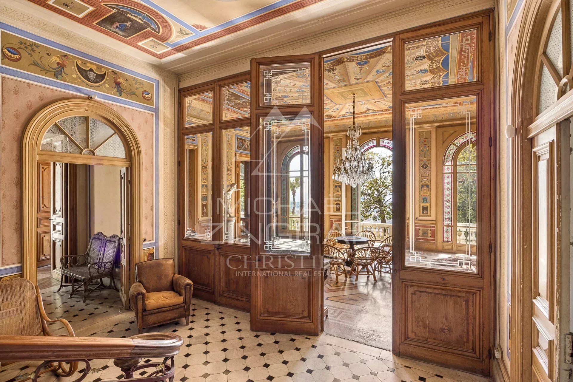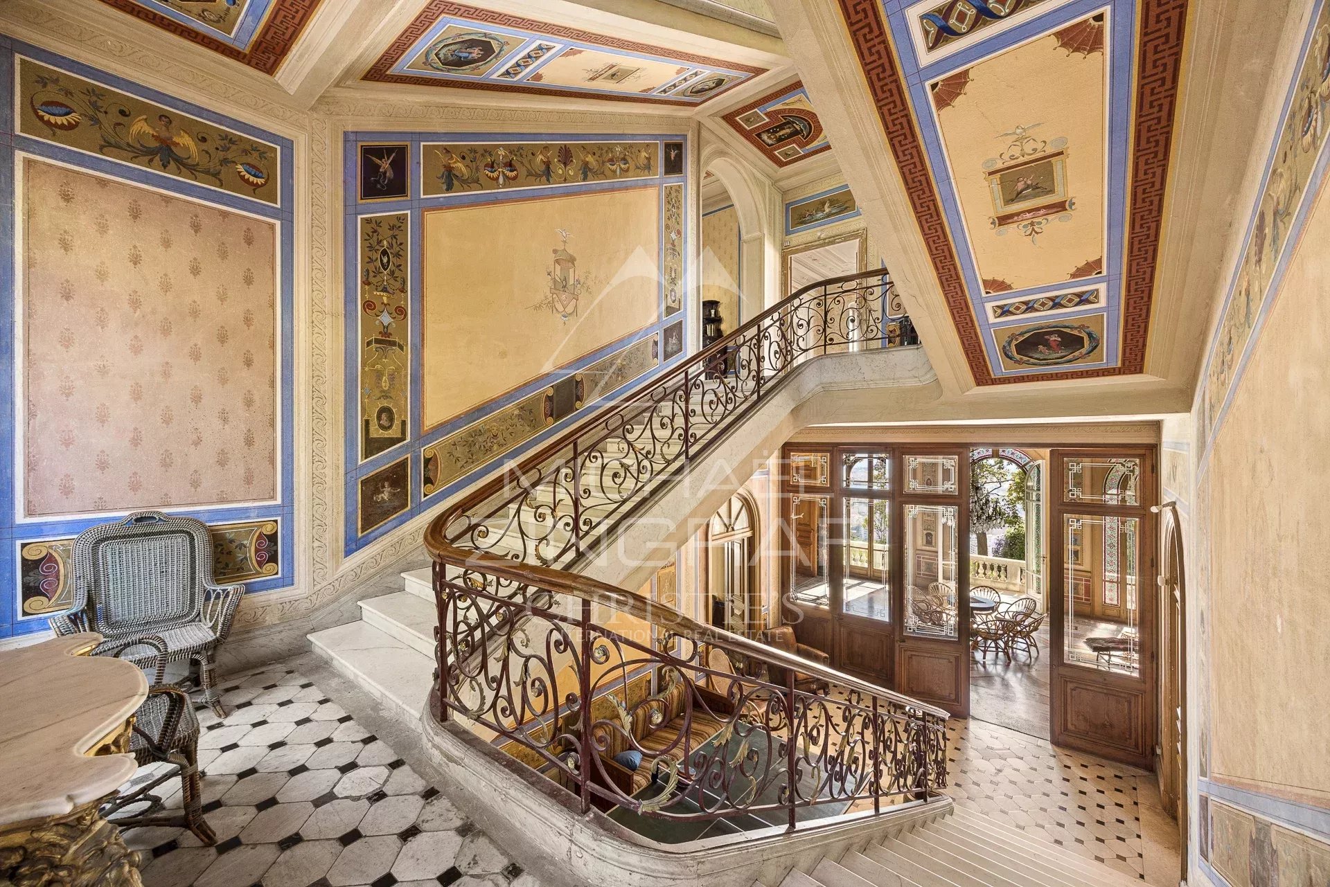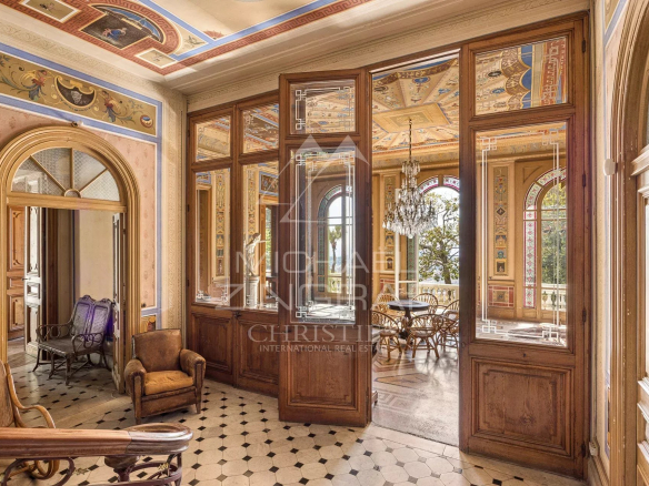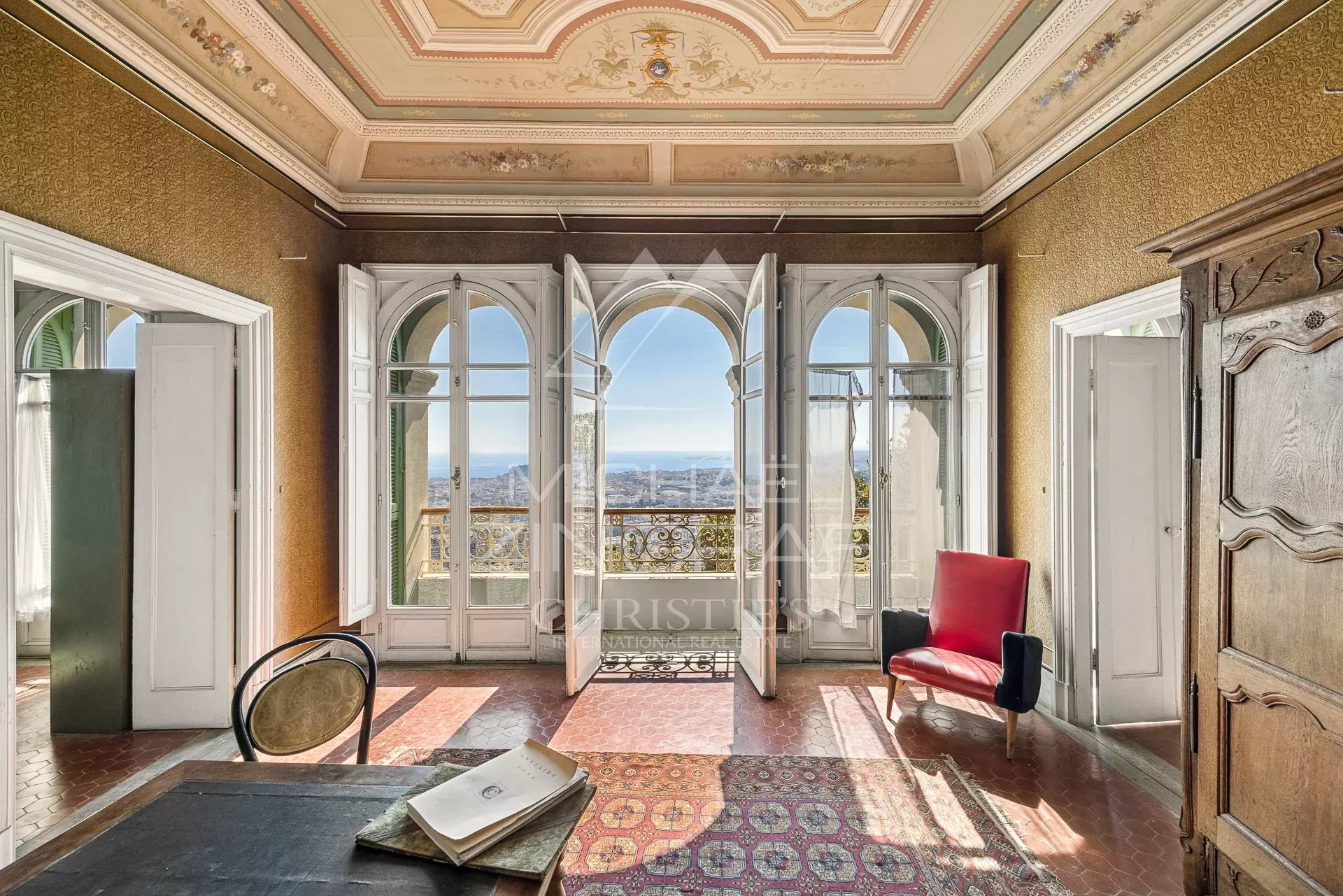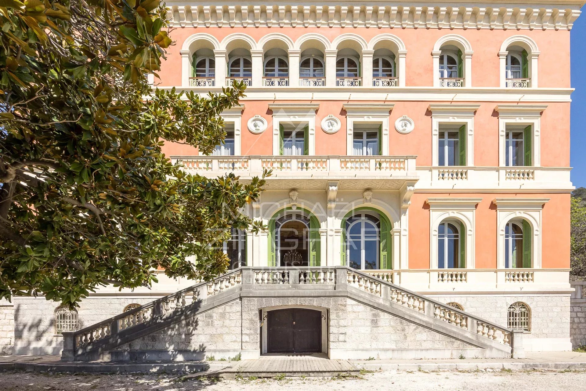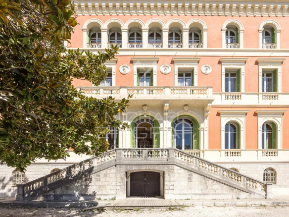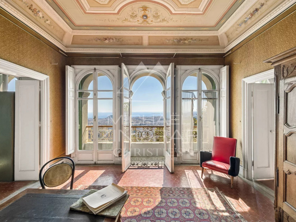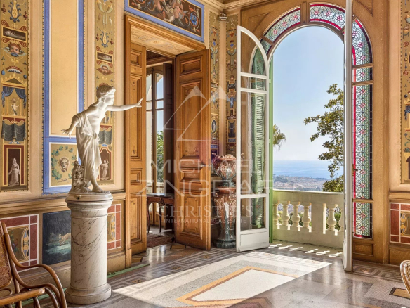 Dominant la ville de Nice, cette propriété de la fin du XIXème siècle offre une vue spectaculaire sur la Méditerranée et les toits niçois, dans un environnement à la fois paisible et chargé d’histoire. Classée aux Monuments Historiques, elle incarne une architecture rare, directement inspirée de la Renaissance italienne.