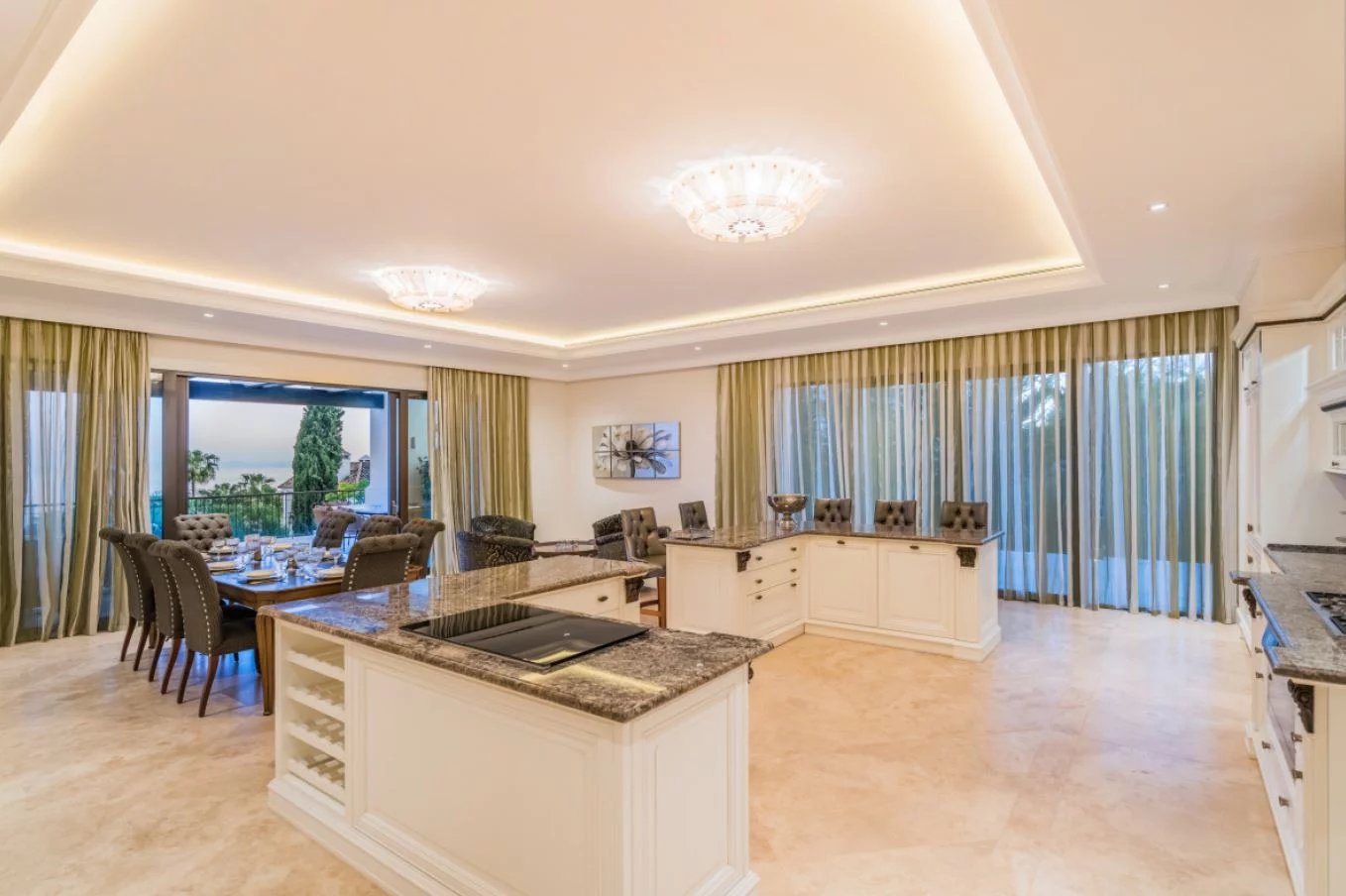 Et les vues ! Vues d’étourdissement ! Le manoir orienté au sud offre un panorama impressionnant de Marbella et de son littoral à travers la Méditerranée scintillante jusqu’à l’Afrique du Nord et les deux piliers légendaires d’Hercule flanquant l’entrée du détroit de Gibraltar.