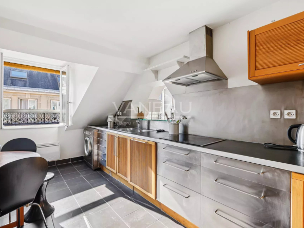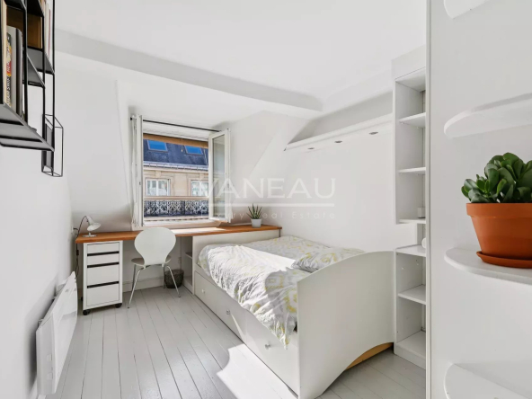 Aussi calme qu’une maison de campagne, lumineux, en parfait état et bénéficiant d’agréables volumes, du charme de l’ancien (parquet et poutres), il se compose d’une entrée avec placard desservant : une cuisine équipée, un grand séjour suivi de 2 chambres (dont une sur jardins),une salle de bains et des toilettes séparées.