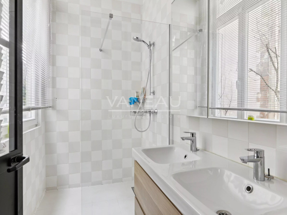 Il se compose d’une entrée desservant : un triple séjour, une cuisine dinatoire/salle à manger, 4 chambres, 3 salles d’eau et 3 toilettes dont un indépendant. A noter qu’une des chambres – équipée d’une kitchenette et d’une salle de douche avec toilette – peut s’isoler du reste de l’appartement comme un studio. Une cave saine vient en complément et une place de parking dans la cour est louée par la copropriété au propriétaire pour 90€ par mois.
