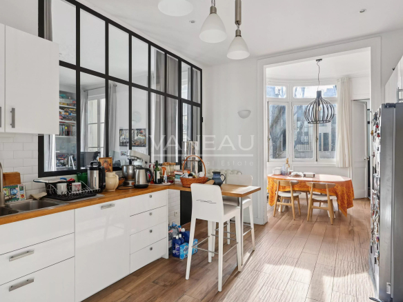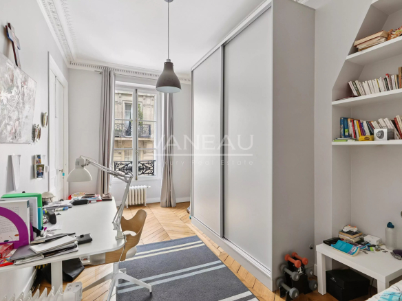 Nous avons le plaisir de vous proposer, au premier étage avec ascenseur d’un bel immeuble 1860, de standing un appartement familial de 6 pièces – de 184.97m2 au sol (177,13 m² en loi Carrez) inondé de soleil grâce à un magnifique bow-window et offrant 3.20m de hauteur sous plafond.