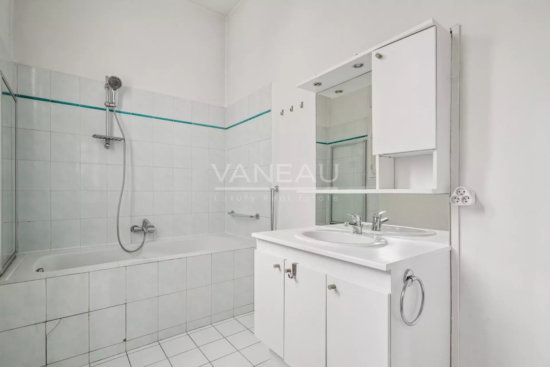 Nous avons le plaisir de vous proposer, en exclusivité, au sein d’une copropriété sécurisée (gardienne, digicode et interphone) et bien entretenue, un appartement confortable (à rafraîchir) de deux pièces (53.50 m² loi Carrez, sur cour) complété par une grande cave.