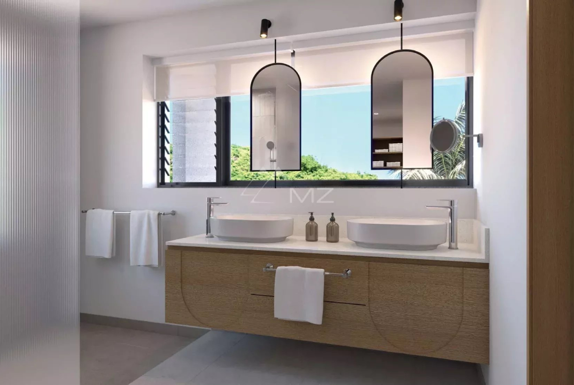 Découvrez le luxe et le calme de ce superbe penthouse d’exception… Au coeur du site protégé de la Plantation Marguery, Blue Vista est une adresse exceptionnelle pour quelques privilégiés. De grands espaces, de la lumière, tout est réuni pour que ce penthouse avec vues spectaculaires se fonde naturellement dans son environnement verdoyant et maritime. Le salon est conçu pour être un véritable écrin d’authenticité, prolongé par sa terrasse spacieuse où l’on peut profiter du coucher de soleil avant que scintillent les étoiles.
