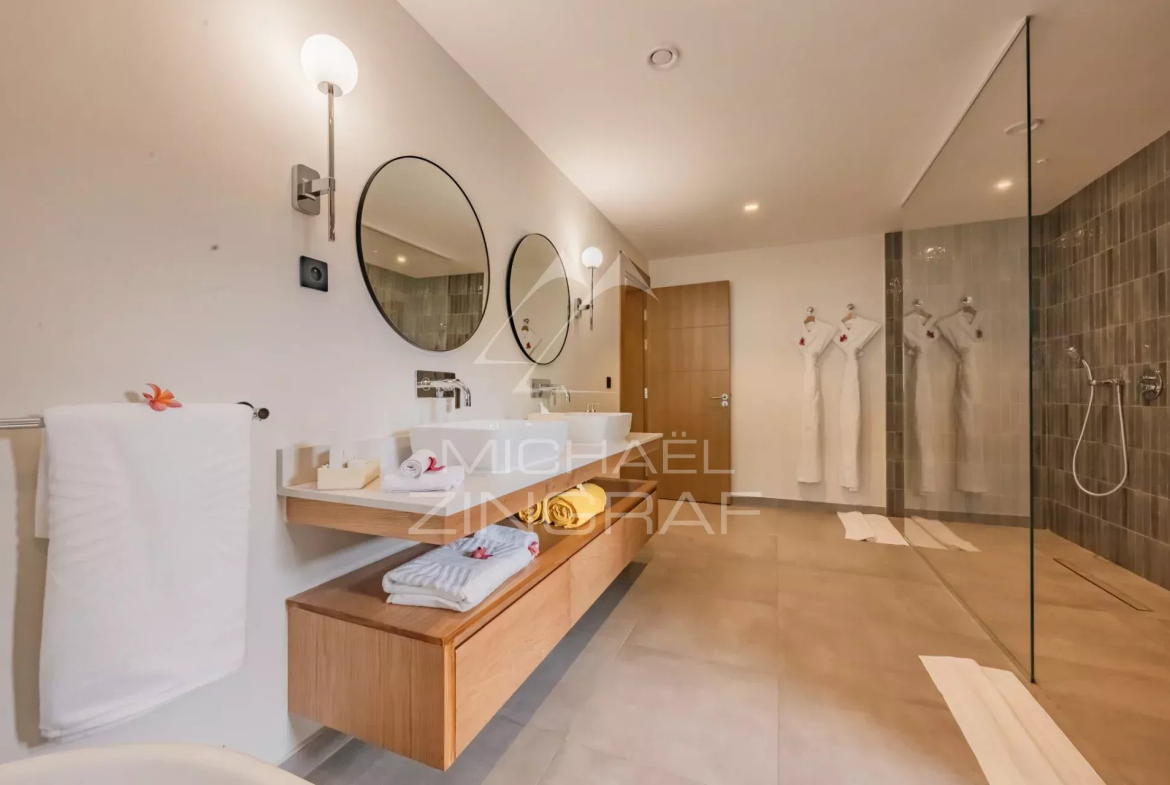 Ce superbe penthouse de 4 chambres et 4 salles de bain a été conçu comme un cocon intime et raffiné. Les vastes espaces de vie offrent des prestations haut de gamme : cuisine ouverte, chambres avec salles de bains attenantes, et une décoration élégante mêlant matières nobles et influences ethniques. Trois places de parking viennent compléter ce bien d’exception.