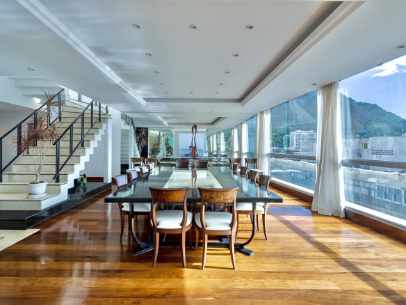 Ce superbe penthouse de luxe avec ses 848m2 repartis en deux étages donne un air de maison au cœur de la Copacabana grâce à ses grands espaces exterieurs.
