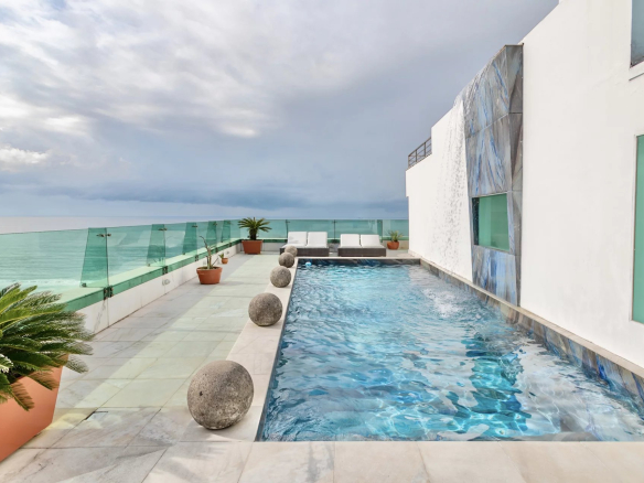 Une piscine de 12m x 5m avec vue sur le Christ et un sauna font également parti de cet étage.