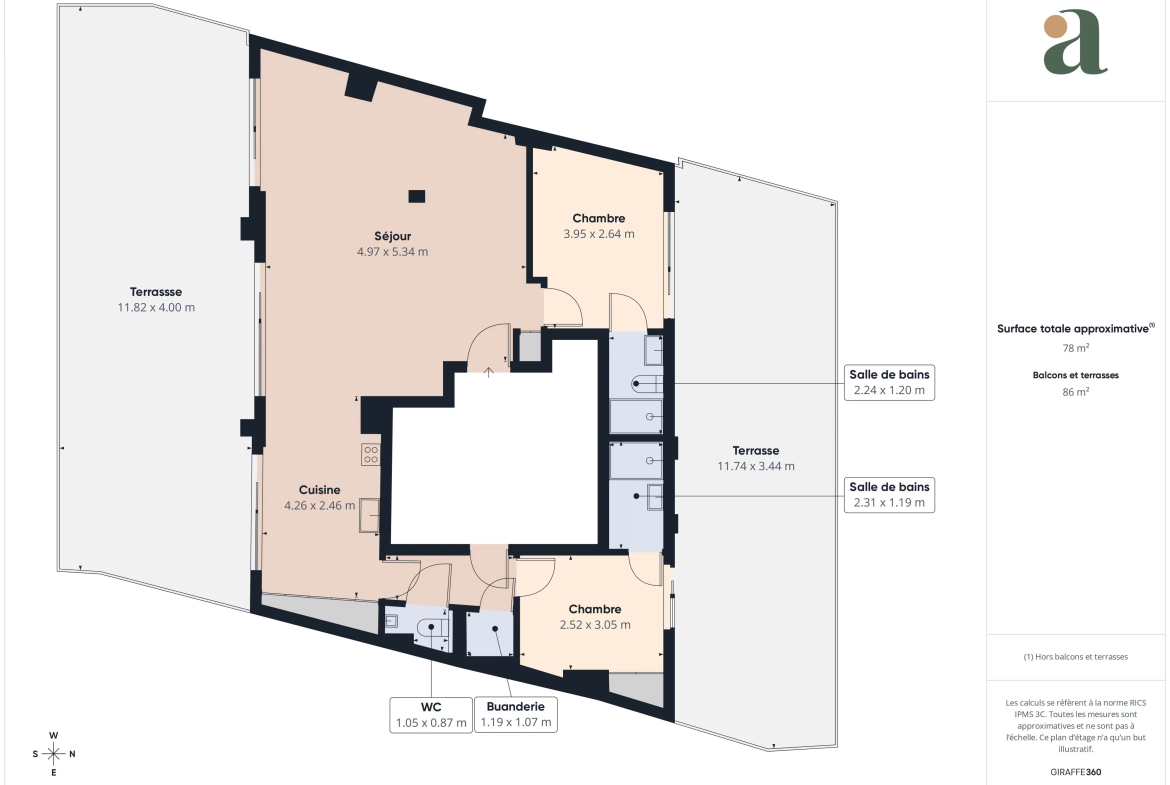 – 86 m² de terrasses, dont 46 m² plein sud