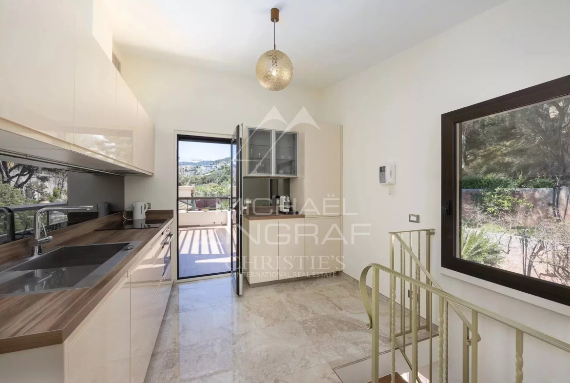 À seulement quelques mètres de Monaco, dans une petite copropriété, ce superbe penthouse en duplex de 128 m² séduit par ses 80 m² de terrasses et son vaste jardin privatif en restanques d’environ 600 m².