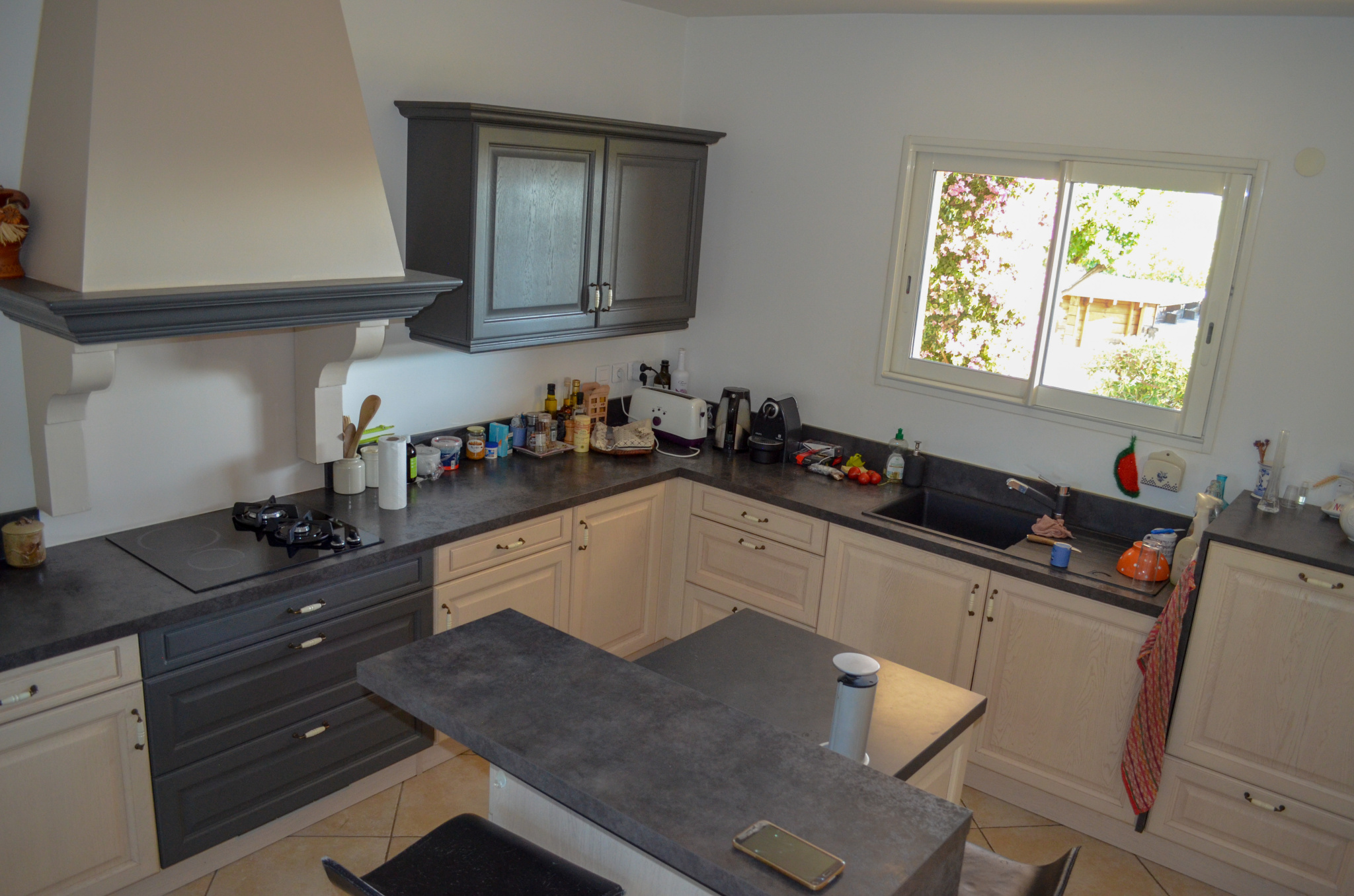 Une belle cuisine ouverte aménagée avec cellier, et une grande terrasse ensoleillée, viennent compléter l’espace jour.