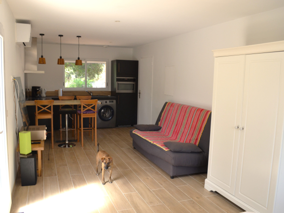 Au rez de jardin, un beau studio indépendant de 29M2, avec sa terrasse, vous offre une capacité de logement supplémentaire. Egalement un garage de 26M2.