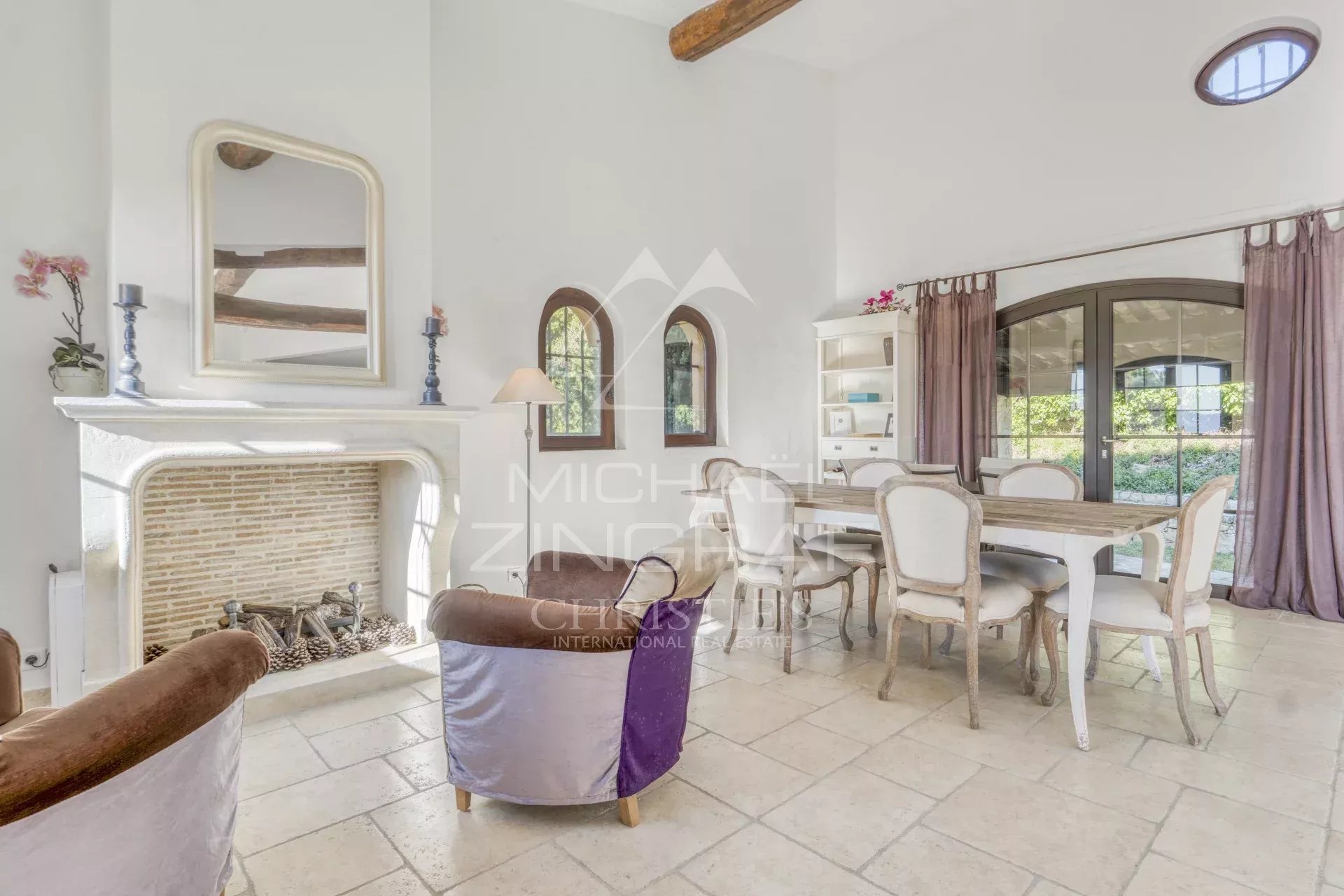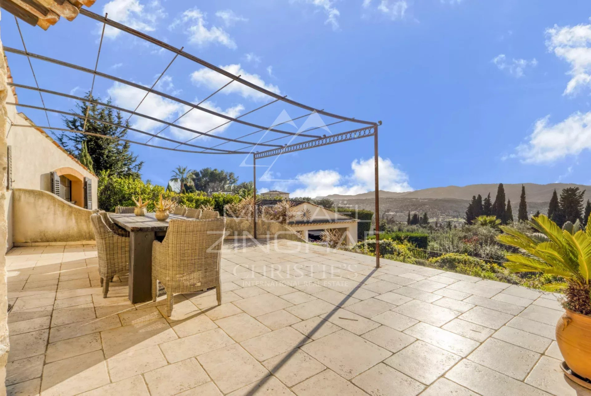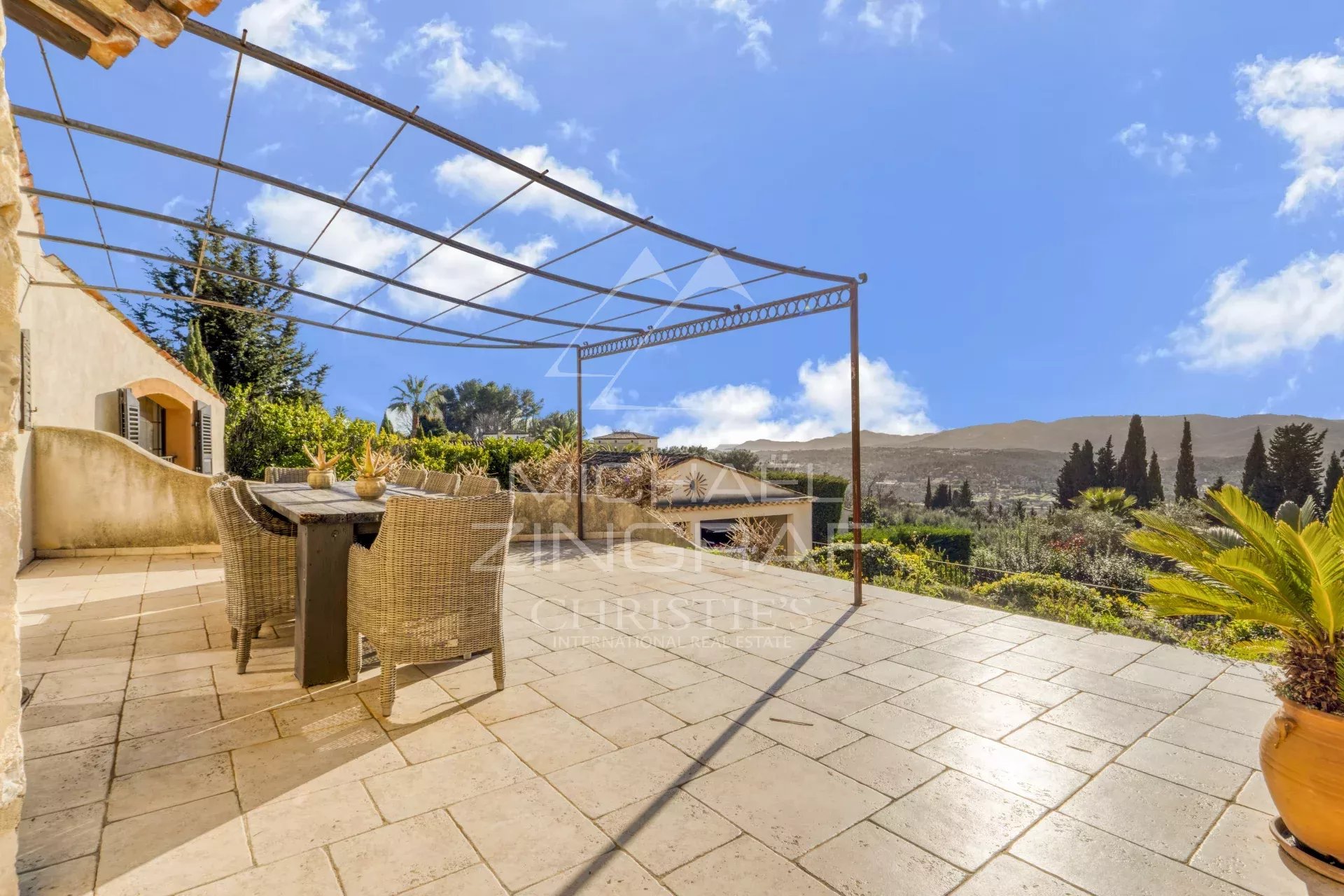 Située au fond d’une impasse discrète et calme, à quelques pas des commerces de Plascassier, cette ravissante villa provençale orientée sud ouest jouit d’une vue panoramique sur les collines verdoyantes, les couchers de soleil jusqu’à la mer.