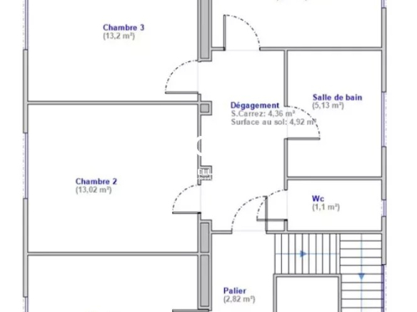 À l’étage, la maison dispose aujourd’hui de trois chambres aux proportions confortables, ainsi que des espaces permettant d’envisager une redistribution optimisée selon les besoins.