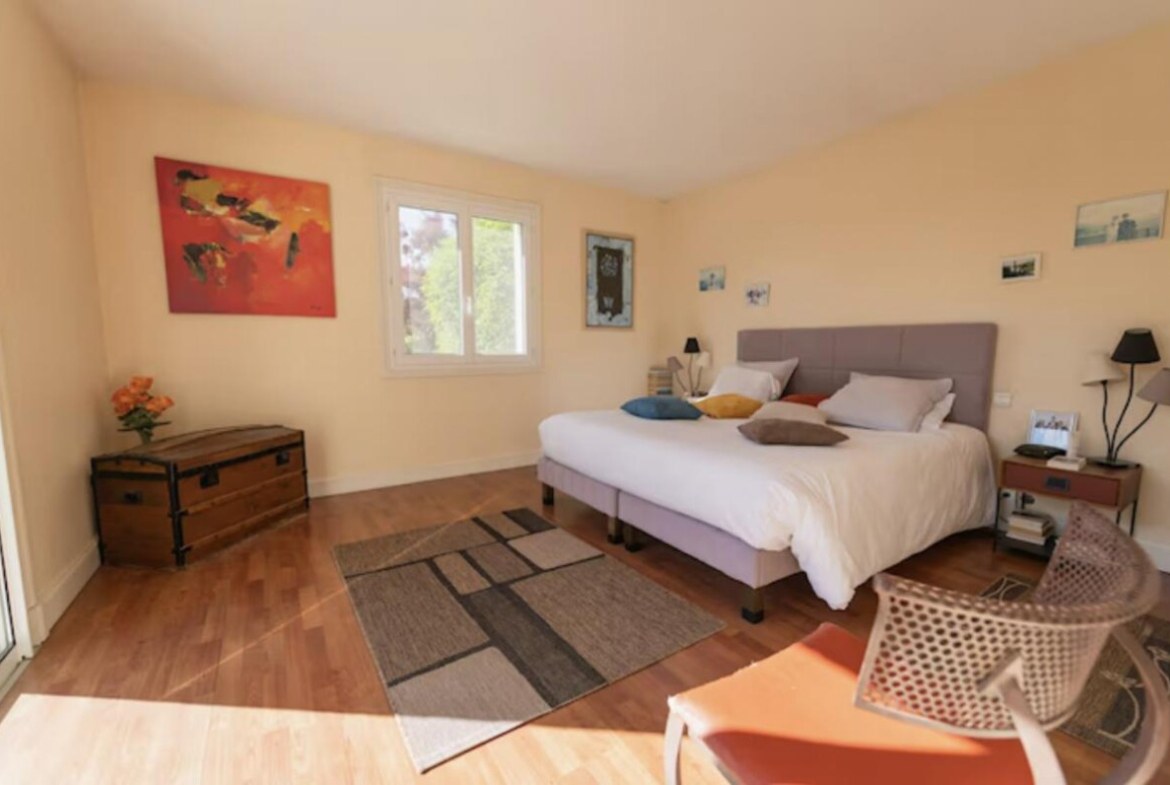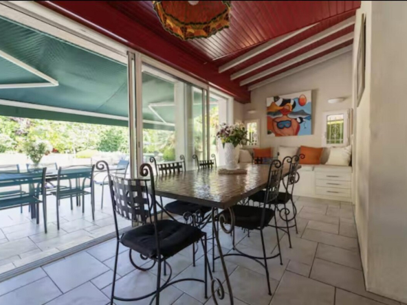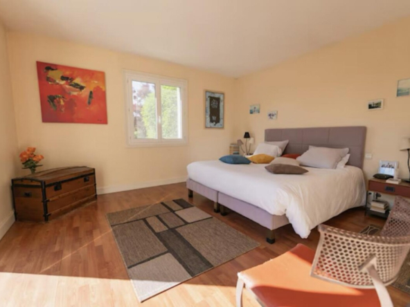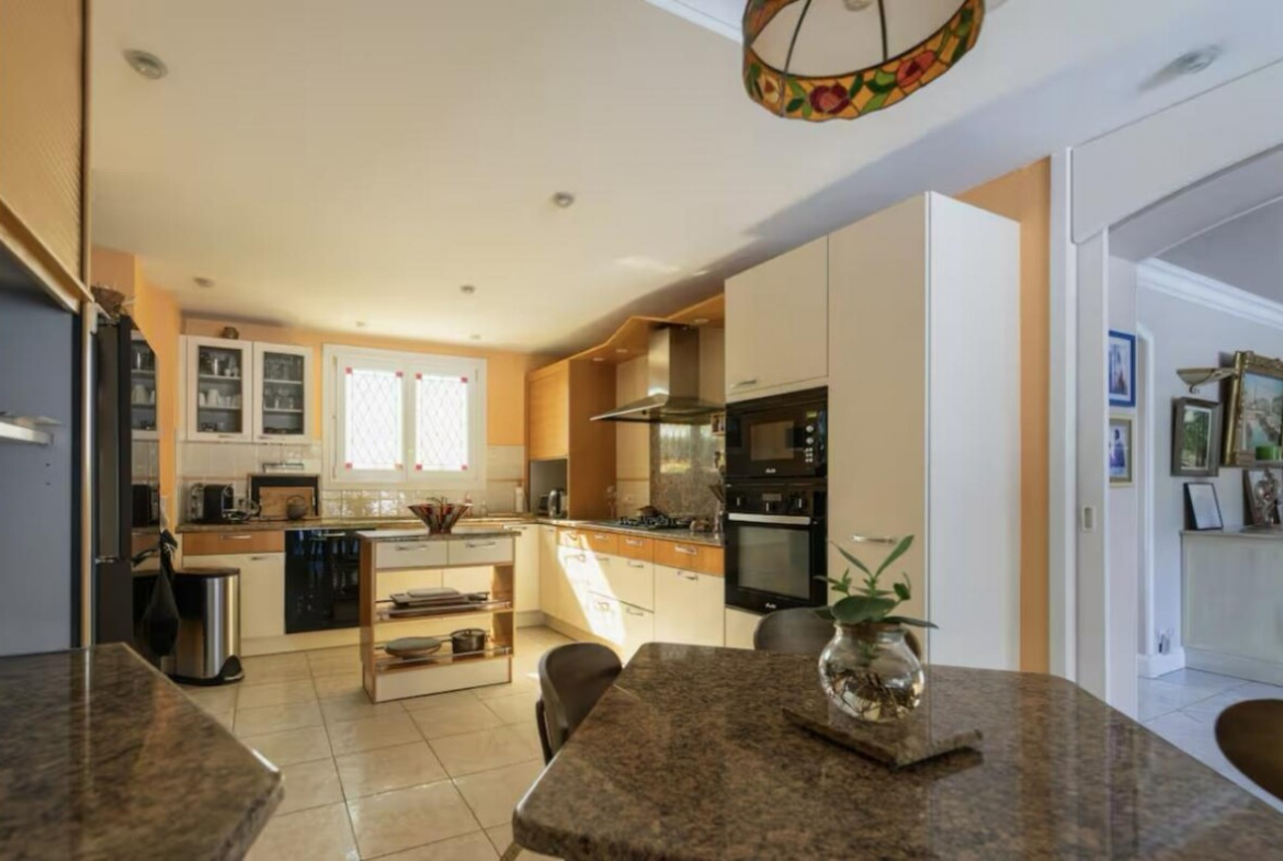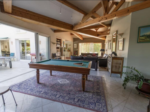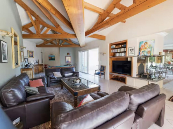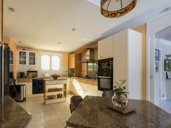 Dès l’entrée, la lumière naturelle met en valeur les beaux volumes de la pièce de vie. Le séjour et le salon, d’une superficie de 76 m2, s’ouvrent largement sur l’extérieur grâce à de grandes baies vitrées, prolongeant la convivialité jusqu’à la véranda. La cuisine, aménagée et entièrement équipée, s’intègre harmonieusement à l’espace et se prolonge par une buanderie fonctionnelle, idéale pour un quotidien bien organisé.
