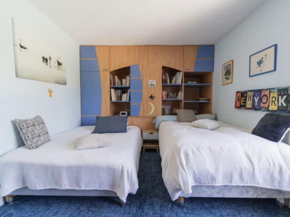 À l’étage, deux chambres spacieuses partagent une salle d’eau. Vous trouverez une loggia, apportant lumière et espace extérieur privatif.