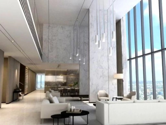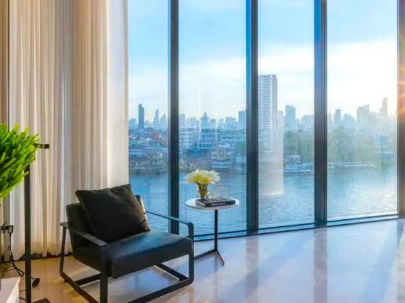 Ce magnifique condo de luxe dans la résidence riveraine de Bangkok est le summum du style haut de gamme au cœur de Bangkok. Un design en duplex offrant quatre chambres et mesurant une vaste superficie de 429 m², il offre une vue panoramique sur le fleuve depuis chaque pièce. Le plan d’étage unique en demi-cercle garantit seulement deux unités à cet étage inférieur du Penthouse, avec son propre accès direct par ascenseur, offrant une intimité ultime. Cette résidence présente une expérience de vie luxueuse avec un concept de design urbain contemporain entièrement équipé avec des matériaux haut de gamme. Les fenêtres pleine hauteur illuminent chaque espace avec de la lumière naturelle et offrent une vue panoramique sur la ville et la rivière, qui peut également être appréciée depuis le balcon. Les cuisines importées entièrement équipées s’intègrent parfaitement à une salle à manger spacieuse. Le salon spacieux dispose d’un mobilier somptueux et complète la palette de couleurs terreuses qui parcourt tout l’appartement. L’attention portée aux détails est impressionnante avec des caractéristiques de conception imaginatives combinant un style urbain épuré, un mobilier élégant et des pierres complexes. Il y a de nombreux espaces de rangement et utilitaires offrant une vie de luxe épurée pour le travail, la détente et la socialisation. Il existe de nombreux équipements communs pour les résidents, notamment une piscine en plein air et une salle de sport bien équipée. Les propriétaires disposent également de places de parking dédiées. Situé à quelques mètres du bord de l’eau, ce développement de luxe est au cœur d’un quartier commercial et résidentiel en bord de rivière. Le complexe commercial Icon Siam est à proximité, et il y a un accès facile à un éventail de restaurants et de lieux de divertissement à proximité.