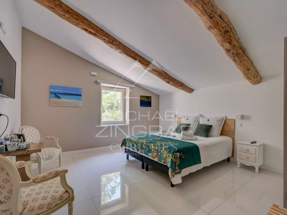 Développée sur une surface habitable d’environ 360m2, la maison offre sept suites, chacune dotée de sa propre salle de bains, garantissant un confort optimal et une parfaite intimité. Le séjour lumineux et spacieux s’ouvre sur de larges terrasses, parfaites pour profiter des douces soirées du sud. La cuisine moderne entièrement équipée séduira les amateurs de gastronomie et de convivialité.