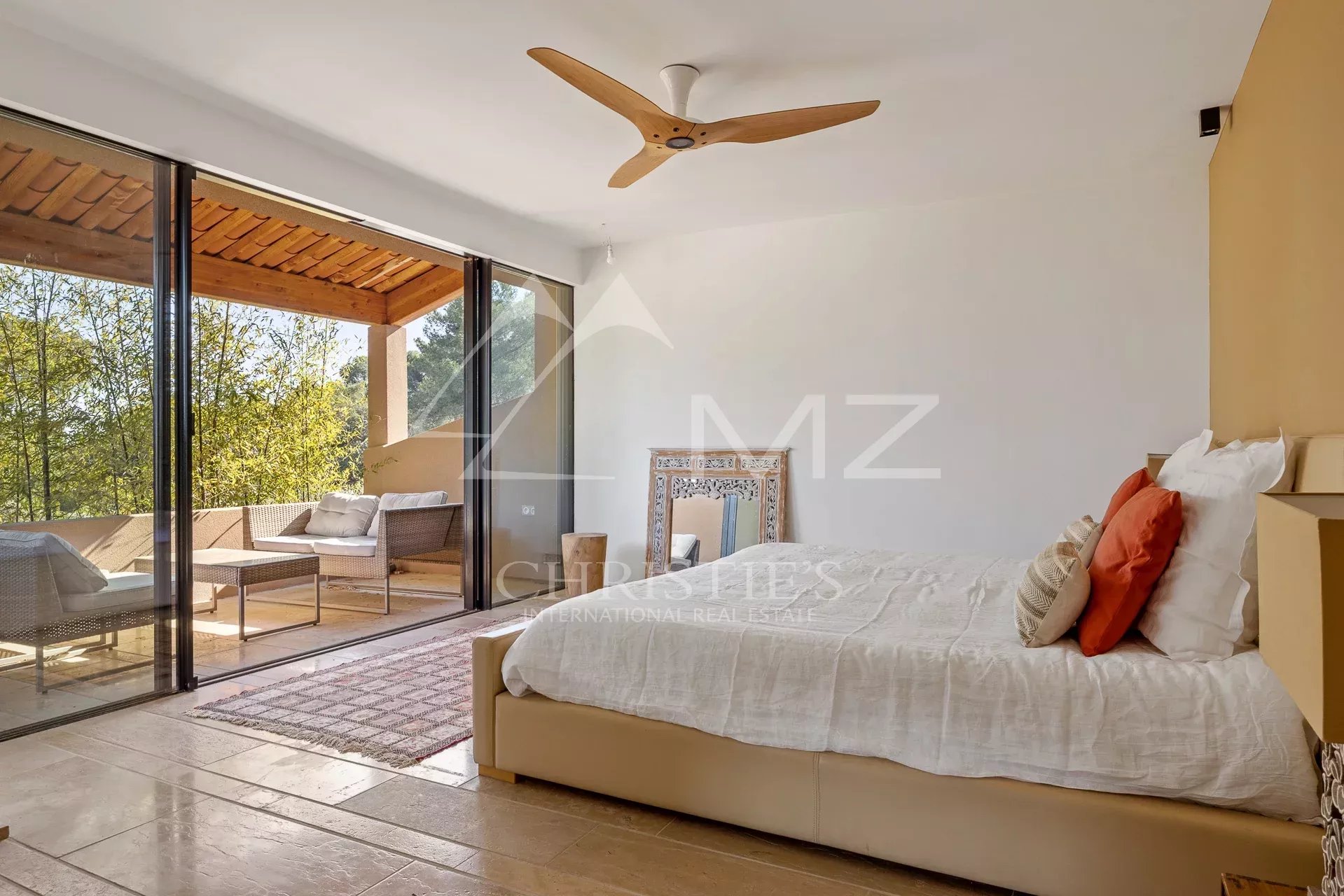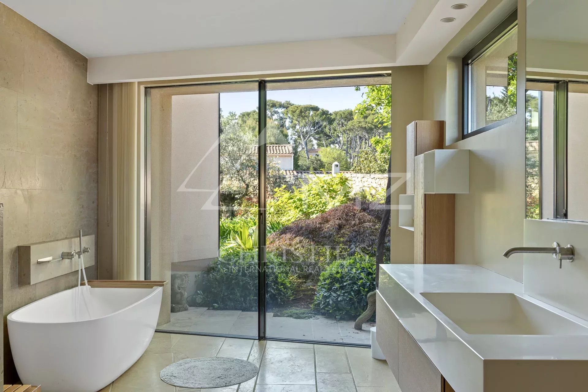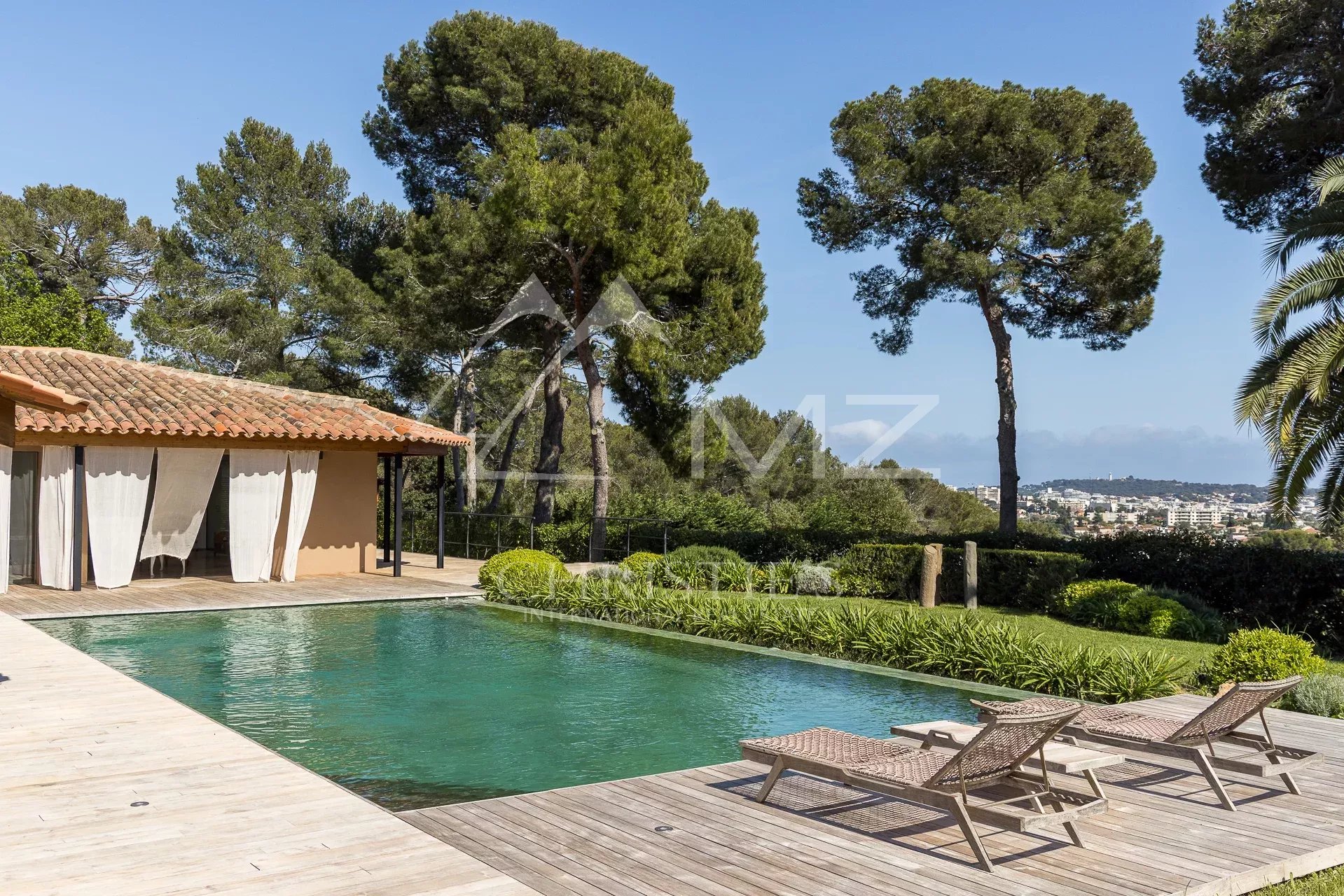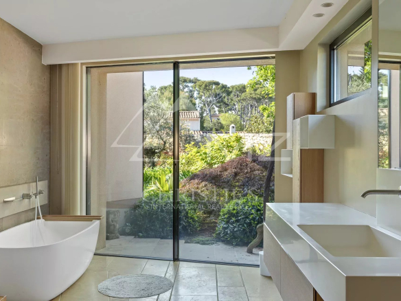 Dans un quartier confidentiel d’Antibes, en position dominante, cette merveilleuse propriété d’architecte Sauzet allie à merveille luxe et raffinement.