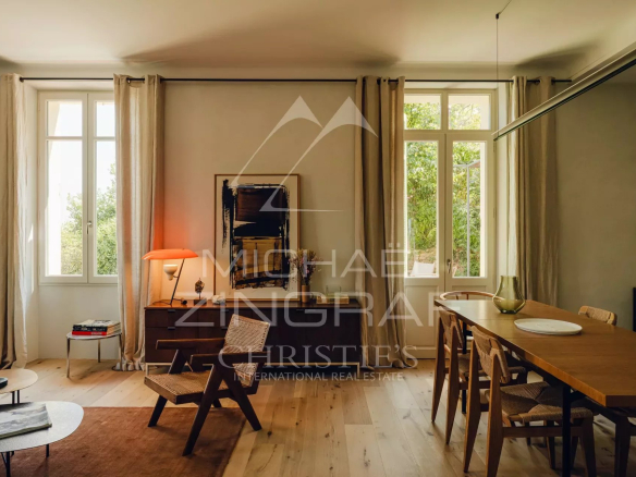 La véritable élégance réside dans les détails, et cela s’applique en particulier à cette magnifique maison de ville des années 30, merveilleusement située dans le quartier le plus prisé du vieux Cannet, à proximité de la Mairie, à deux pas du square Tivoli, de ses commerces et restaurants. Ce bien d’exception bénéficie d’une rénovation totale réalisée par un studio d’architecture local et de renom. Le projet se distingue par l’utilisation de matériaux nobles, de textures subtiles et de finitions haut-de-gamme. Chaleureuse et raffinée, la propriété d’environ 172 m² se compose d’une double réception, d’une cuisine ouverte et entièrement équipée, d’une chambre de plain-pied avec une salle de bains attenante. A l’étage, 3 autres chambres dont une magnifique suite de Maître sont à votre disposition. Vue dégagée sur le collines. Jardin paysager d’environ 350 m² avec un espace détente, bassin d’agrément, et garage fermé à proximité viennent compléter cette prestigieuse offre. Qualité de vie inégalable à seulement 15 minutes de la Croisette.