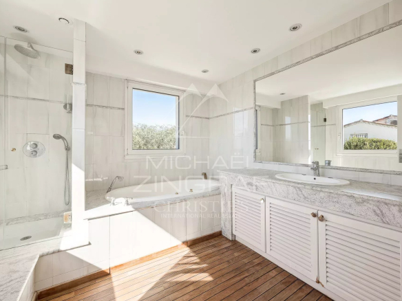 A proximité du centre de Cannes, des commerces et des grands axes, au calme absolu, cette belle villa provençale modernisée d’une superficie d’environ 176 m2 (surface totale d’environ 266m2), dispose à l’étage d’une très belle vue sur les Iles de Lérins et les collines du Cannet et de la Californie.
