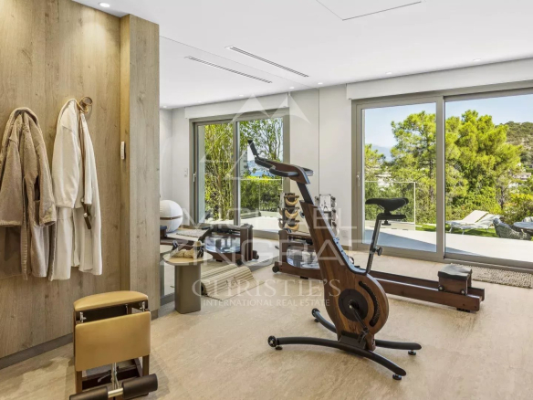 D’une superficie d’environ 290 m², elle offre quatre suites, dont une de plain-pied, un vaste séjour avec cuisine ouverte de 90 m², une salle de sport, un hammam, une buanderie ainsi qu’un abri voiture.