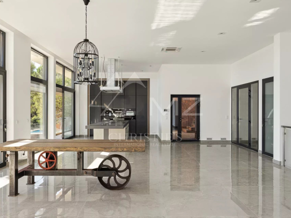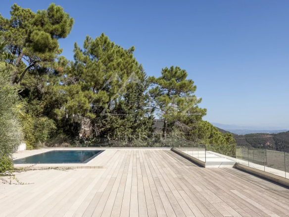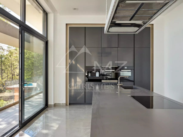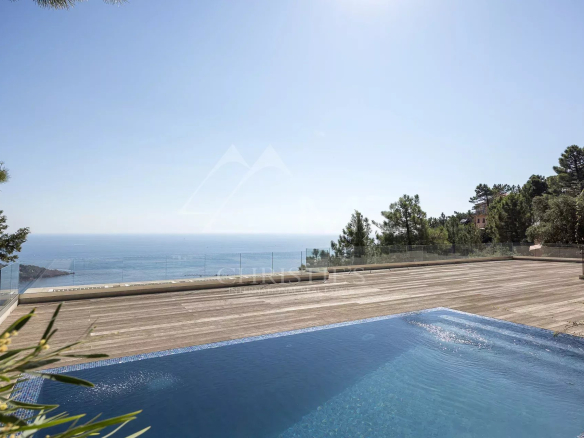 Dans un domaine sécurisé fermé dominant la baie, villa contemporaine neuve qui s’intègre parfaitement dans le paysage, signée par un architecte de renom, bâtie sur 2 niveaux et développant plus de 300 m2 avec ses annexes. Au calme, à l’abri des regards, elle dispose sur 2 niveaux totalisant 255 m2 habitable environ, d’un très grand séjour avec cuisine ouverte et d’une chambre au rez-de-chaussée et en rez-de-jardin, 4 autres chambres dont une master et une chambre avec accès indépendant. Le toit terrasse bénéficie d’une piscine avec vue mer époustouflante. Trois grands garages viennent compléter cette propriété située à 5 minutes des plages et les restaurants du Port de La Figueirette, à 10 minutes du centre ville de Théoule, à 35 minutes de Cannes Croisette et à 45 minutes de l’Aéroport de Nice.