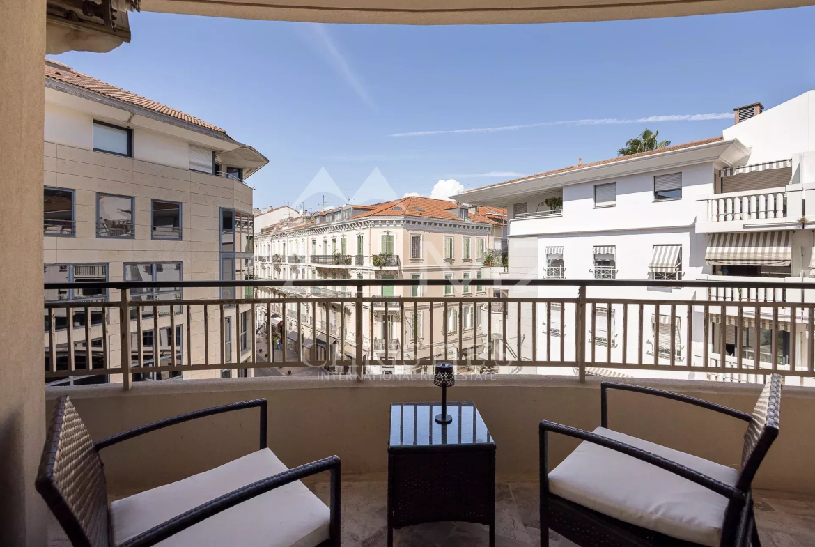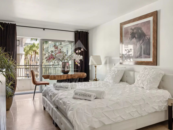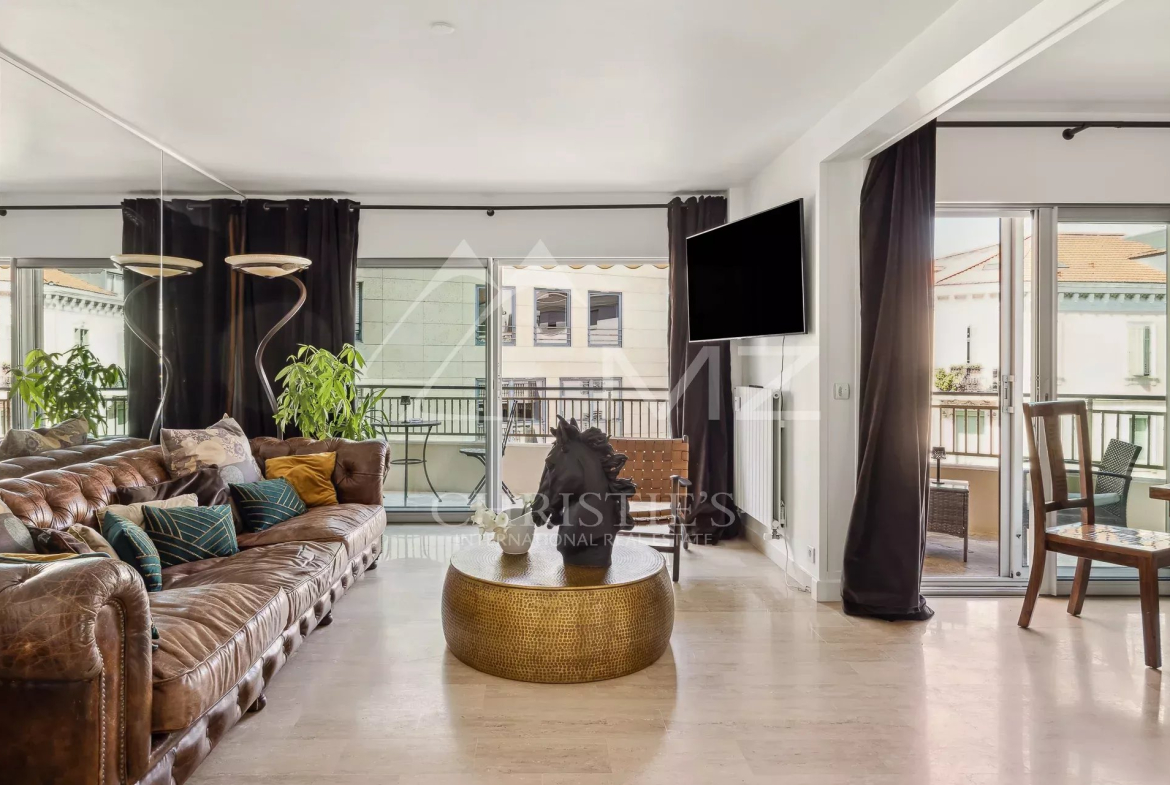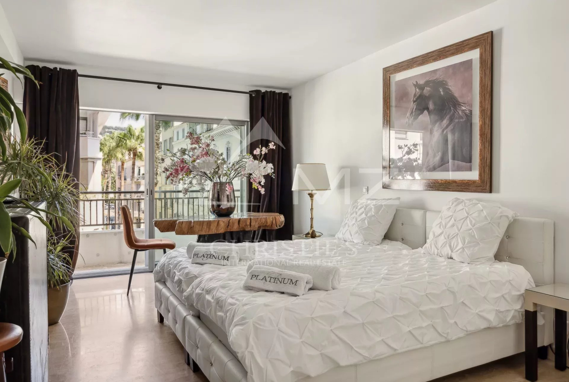 EXCLUSIVITÉ, Idéalement situé dans le quartier prisé de Cannes Banane, entre l’hôtel Carlton et le Marriott, ce splendide appartement 4 pièces se compose d’un hall d’entrée, un spacieux séjour ouvrant sur une belle terrasse, une
