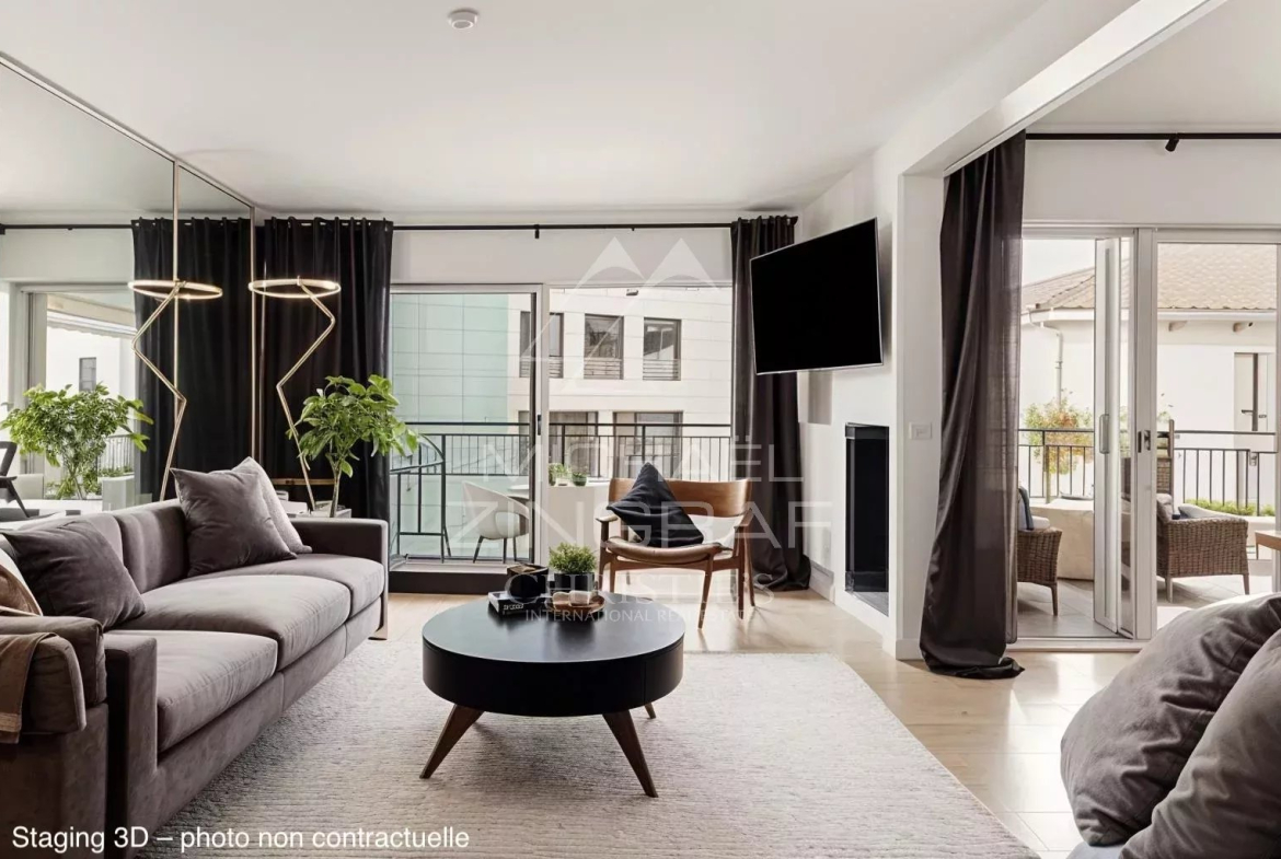 cuisine entièrement équipée, 3 chambres, 2 salles de bains, toutes les pièces s’ouvre sur la terrasse. WC invités.