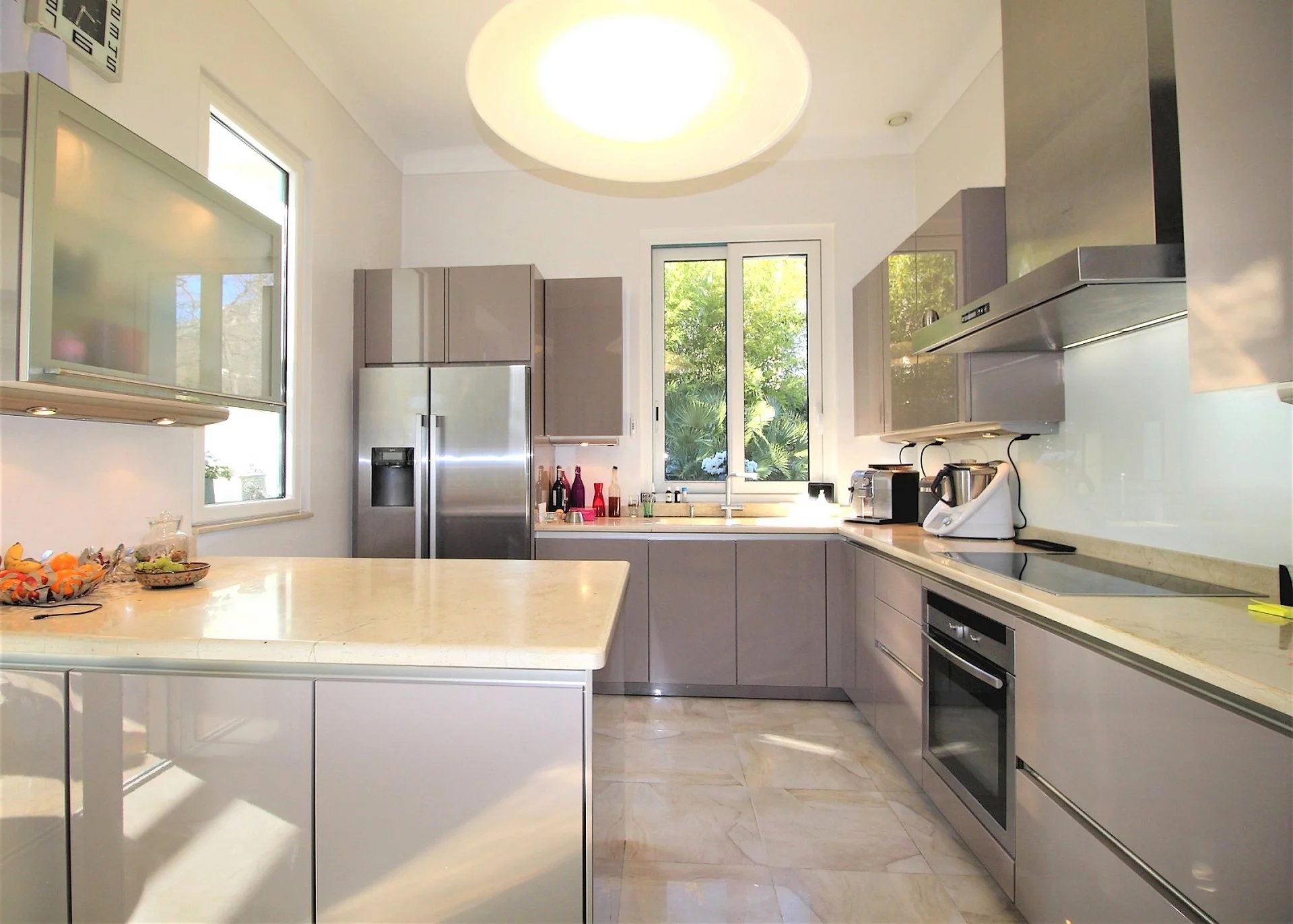 Elle se compose d’une entrée, salon, cuisine indépendante entièrement équipée, ouvrant sur une grande véranda, 5 chambres et 4 salles de bains, un bureau.