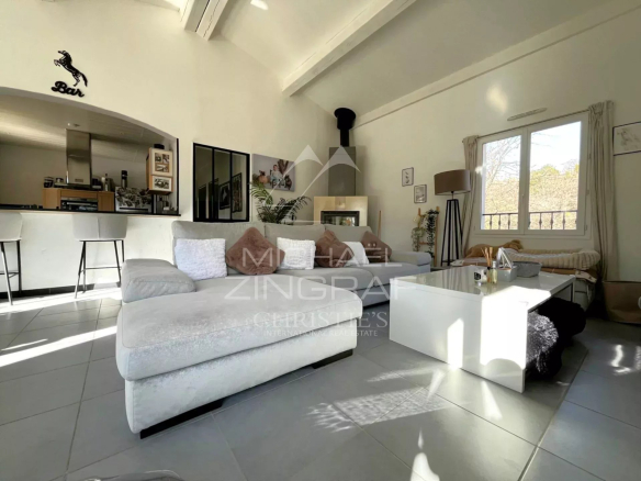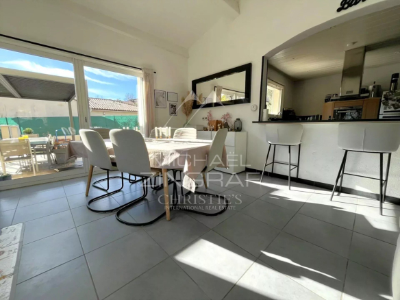Dans un environnement résidentiel recherché, au calme absolu, cette maison d’environ 240 m² séduit par sa luminosité et ses volumes généreux. Exposée Sud et Est, elle offre un cadre de vie agréable, ouvert sur un jardin avec piscine chauffée.
