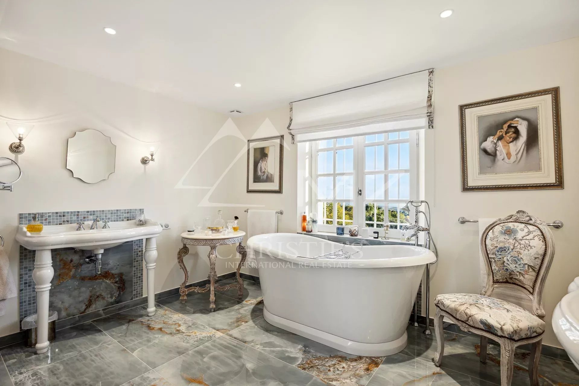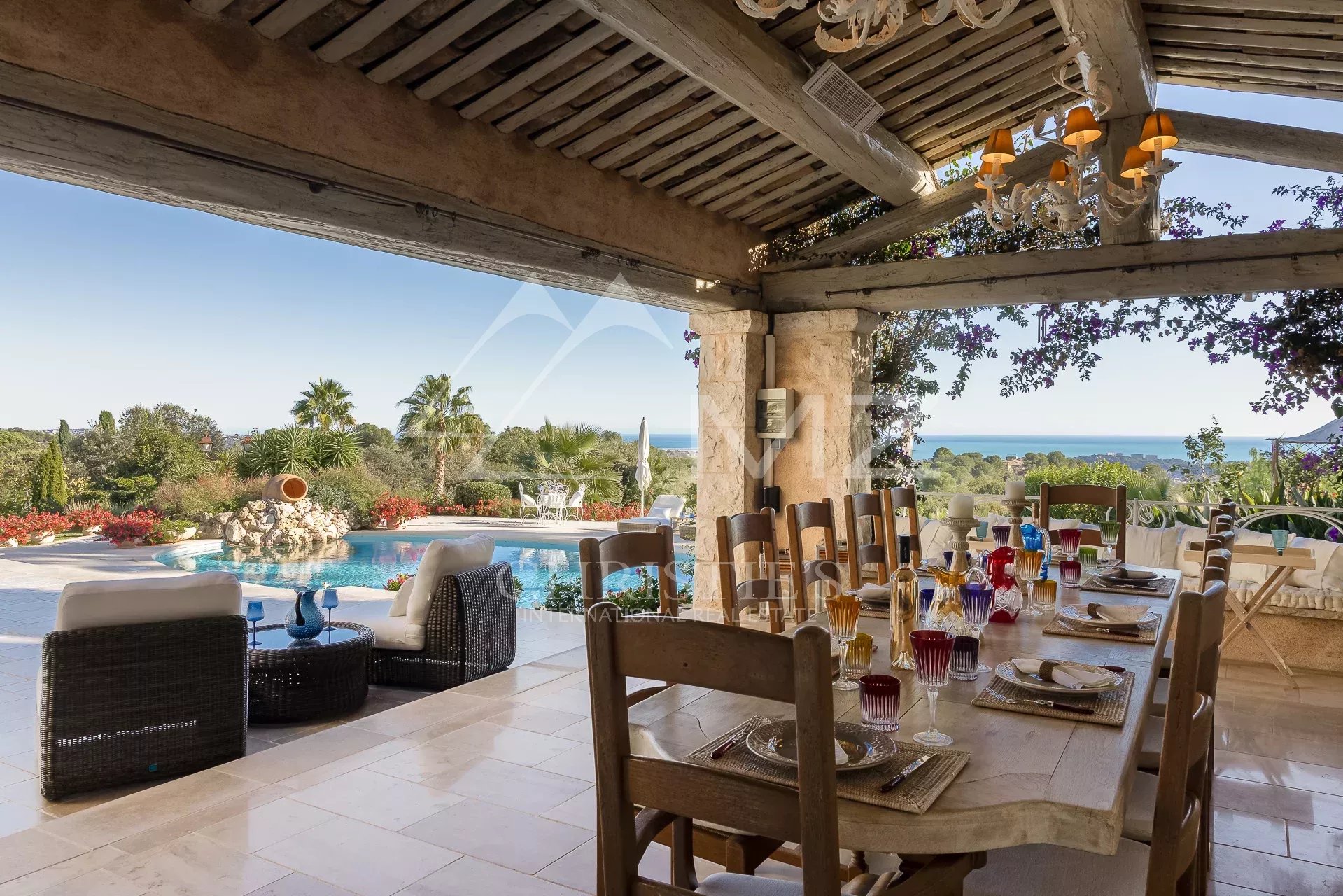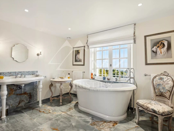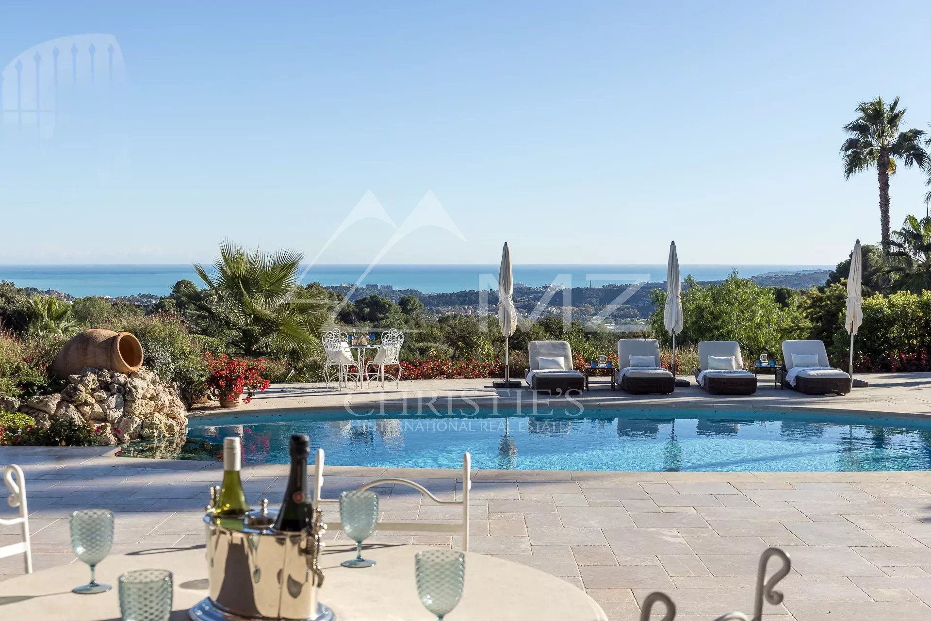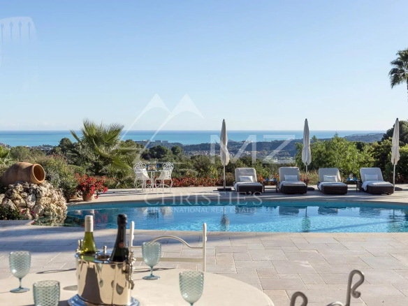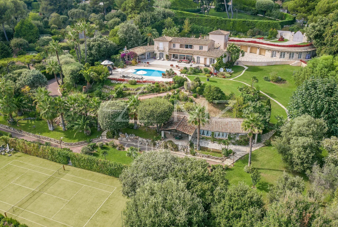 Perchée sur les collines entre Nice et Cannes, cette luxueuse propriété est située à proximité immédiate du prestigieux domaine fermé Les Hauts de Saint-Paul. Entourée de pelouses vallonnées, elle bénéficie sans doute des plus belles vues mer de toute la région. Cette résidence de 11 chambres a été récemment rénovée et répond aux plus hauts standards. Organisée sur trois niveaux, les points forts comprennent un généreux salon avec salle à manger attenante ouvrant sur une immense terrasse avec sa cuisine et salle à manger extérieure, le tout magnifiquement disposé autour d’une élégante piscine. Deux maisons et un appartement d’amis, un court de tennis parfaitement entretenu complètent ce cadre somptueux.