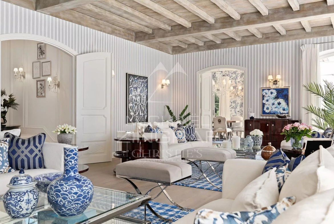 La propriété est équipée d’un home cinéma, d’une salle de jeux avec billard, d’un gym, d’un espace spa, de deux piscines (intérieure et extérieure 25×8), d’un court de tennis et d’une large cuisine d’été. Depuis la propriété, vous pourrez profiter d’une vue panoramique sur la mer et les collines environnantes, offrant un cadre idyllique et apaisant.