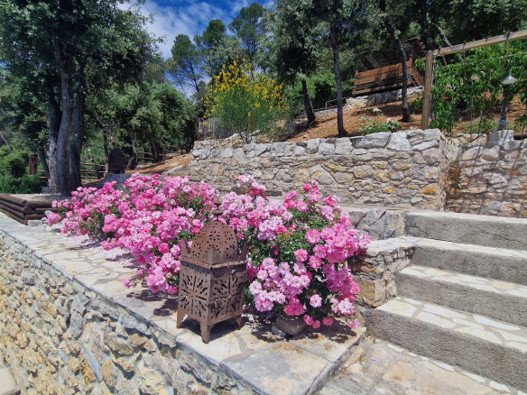 Implantée sur plus d’un hectare de terrain exposé plein sud, agrémenté d’essences méditerranéennes et de magnifiques restanques en pierre, la propriété bénéficie d’une vue panoramique sur les collines, dans un environnement de calme absolu, sans vis-à-vis, propice au repos et à la convivialité.