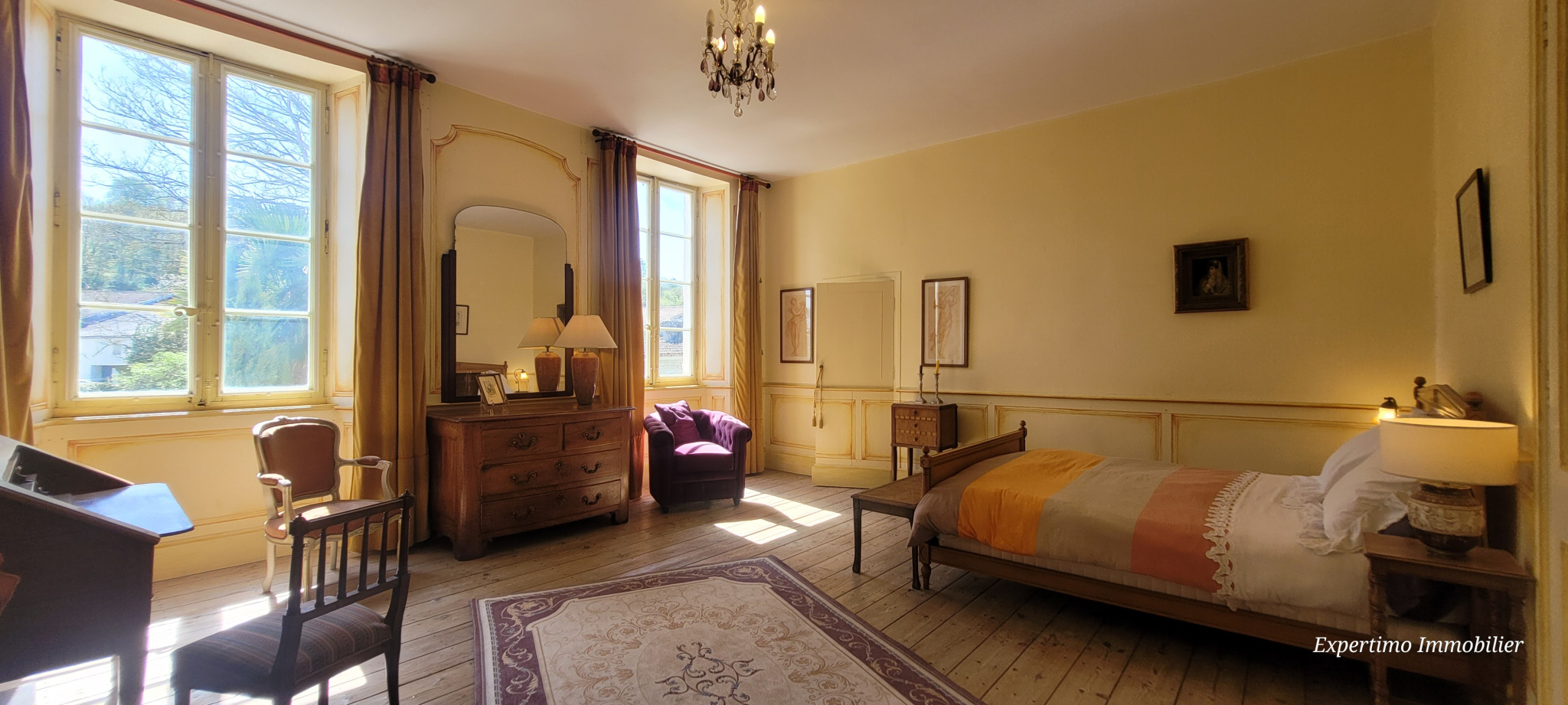 Située en JONZAC et COGNAC, nous vous proposons de décourvrir cette somptueuse propriété offrant plus de 450 m2 d’espace de vie. Lorsque que vous aurez poussé la grille en fer forgé de la propriété, vous serez happés par cette demeure de charme, érigée au bout d’une allée paysagée. Une fois dans le hall traversant, vous aurez le plaisir de découvrir les salons, salle à manger, cuisine et autres pièces décorées avec goût. Un oeil pointé sur la porte de la cour intérieure, vous y découvrirez la cour carrée où son pigonnier trônant magestueusement.