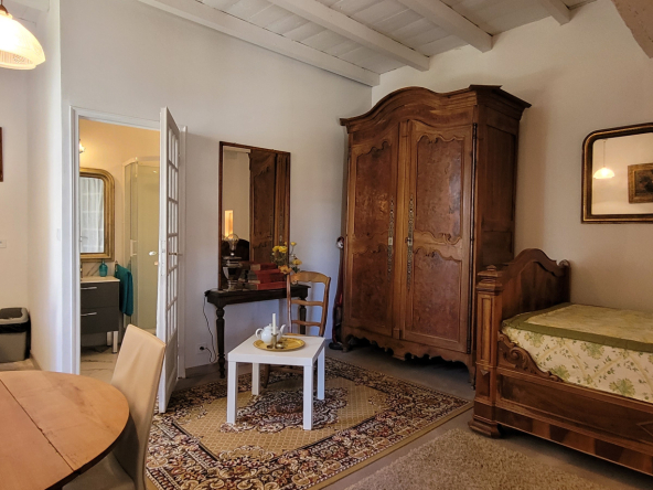 A l’extéreur se trouve diverses dépendances offrant de nombreuses opportunités. Sur l’aile Ouest, une salle (ancien restaurant) avec un four à bois en fonction, un gîte pour 2 personnes, un local stockage, une buanderie. Une grange servant de salle de réception, une cour amphithéatre, une cour carrée surplombée d’un magnifique pigeonnier historique. Une grange sert actuellement de local professionnel. Une grange où se trouve encore un fouloir à raisin en pierre.