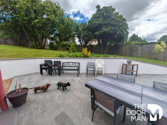 Grand jardin arboré idéal pour activités en plein air.