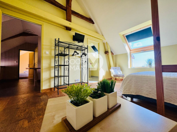 Salle de Réception : la salle de réception de 220 m², équipée d’une cheminée, peut accueillir environ 80 personnes. Elle dispose d’une chambre froide, d’un laboratoire, de pièces de stockage, et de parkings. Idéale pour évènements ou séminaires. Au-dessus, deux chambres avec salles de bain privatives et un coin cuisine commun, offrant un total de 10 couchages.