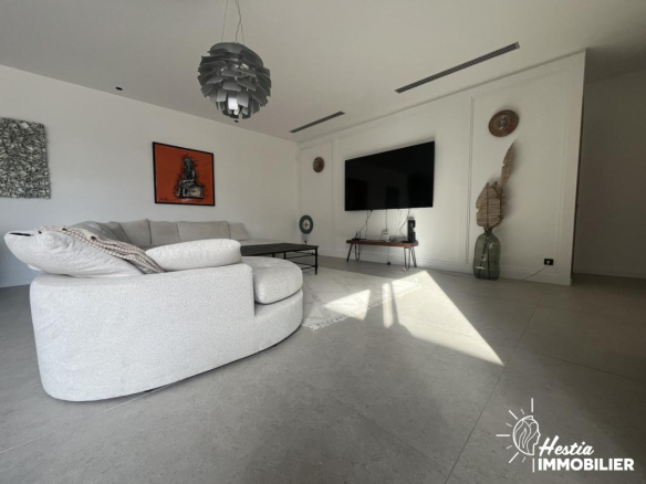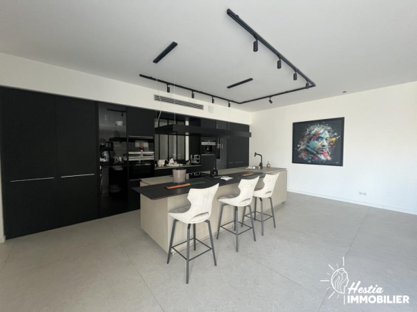 Cette propriété séduit par ses matériaux contemporains et ses finitions soignées, alliés à une construction récente répondant aux normes actuelles de performance énergétique avec un DPE A, garantissant confort, esthétisme et efficience au quotidien.