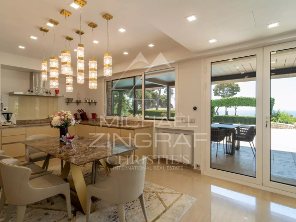 Implantée sur un terrain plat de 4 369 m², cette propriété bénéficie d’une vue mer panoramique exceptionnelle sur la Méditerranée. Une grande piscine, parfaitement intégrée dans l’environnement, permet de profiter pleinement de ce cadre idyllique tout en offrant un espace de détente et de loisirs.