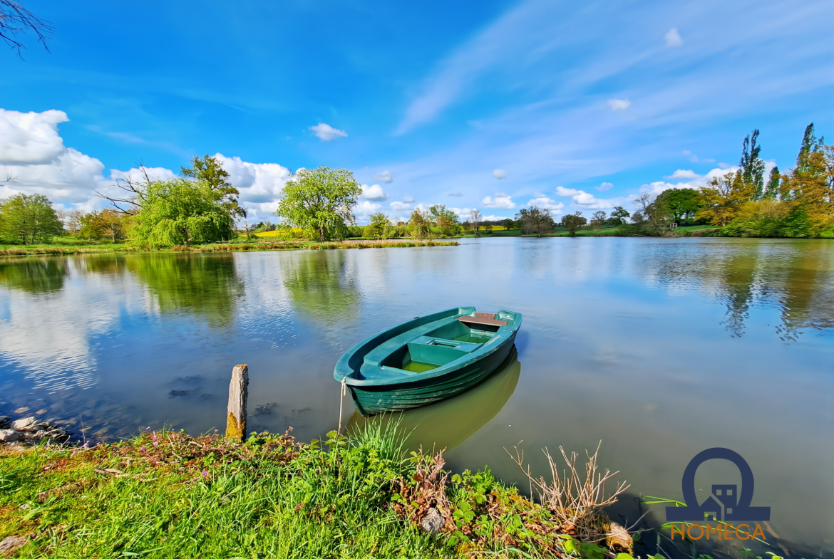 La propriété s’articule autour d’un magnifique étang fondé en titre d’environ 3 hectares, véritable atout patrimonial et écologique. Doté d’une gestion automatisée du niveau de l’eau, il se déverse harmonieusement dans deux ruisseaux, offrant un cadre idyllique pour les amateurs de pêche, biodiversité, tourisme vert ou projet de chambres d’hôtes.