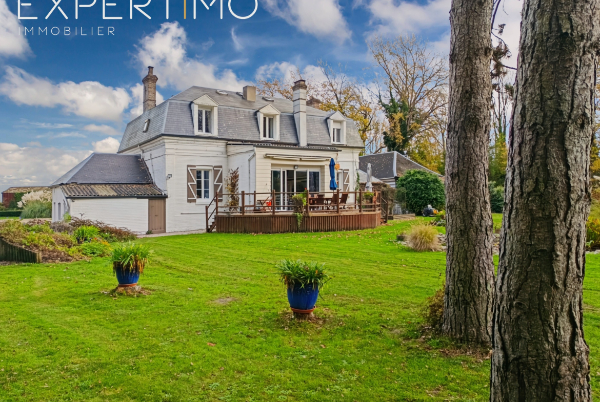 À quelques minutes du Crotoy et du Parc du Marquenterre, découvrez cette belle propriété de campagne, nichée dans un cadre verdoyant et paisible. Au coeur d’un environnement naturel privilégié, entre LE CROTOY, le Parc du Marquenterre, les plages de QUEND et de FORT MAHON, cette maison de maître du XIXème siècle s’impose par son élégance intemporelle et la qualité de son entretien. Derrière son portail, une cour carrée bordée de dépendances dévoile une propriété rare, implantée sur plus de 4,5 hectares de terrain paysagé, arboré. La maison principale, de 200m2 habitables, marie le charme de l’ancien et le confort actuel. Salon avec cheminée ouverte, Salle à manger avec insert, cuisine équipée donnant sur une terrasse suspendue offrant une vue dégagée sur le parc, une Chambre et salle d’eau au rez-de-chaussée. À l’étage, quatres chambres, un bureau, un dressing et une salle de bain complètent l’ensemble. Les dépendances, toutes en bon état, offrent un potentiel considérable : Une maison y est déjà aménagée, de 80 m2 (3 chambres, cuisine/salle à manger, salle d’eau) pour accueillir gardien, famille, amis ou activité gîte. Une salle de réception de 45 m2, des étables et un box pour chevaux, des espaces de stockage et ateliers. Un lieu rare, authentique, idéal pour les amateurs de belles demeures ou les amoureux de nature souhaitant concilier confort, espace et prestige.