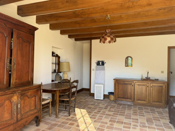 La dépendance propose un séjour de 25 m² au rez-de-chaussée, une chambre et une salle de bains à l’étage. Un garage attenant de 38 m² offre des possibilités d’extension pour créer une cuisine d’été ou même une nouvelle chambre avec salle de bains privative.